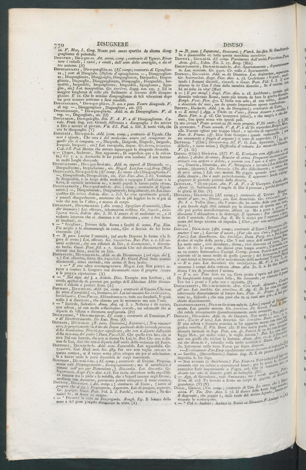 Disusato, Dis-u-sà-to. Add. m- da Disusare.^ Non {isal p t f cC . nov - - j ( ,g-solo , Uscito d’ uso,] Lat. desuetus. Gr. xc-vréfin 1 - } ‘ con «"deitàD una subita e disusata avarizia in lui apparita mo cQn cigiadra novella. E Eit. Dant. 2 'à). Il tuo unico P°f- p i co 11disusala mettesti in fuga. Petr. son. 4 ?- Perchè fa j j0 c“ sU , |C cWfoggia Meli, per mollo voler, le voglie intense- " ’j. 3 .f e \ lsaie son quelle che turbali la fantasia. Amm■ -" nt f v' a oii. P te> 'ciò che disus. to è , eziandio nella turba notabile e. ‘ ,j ai (V)