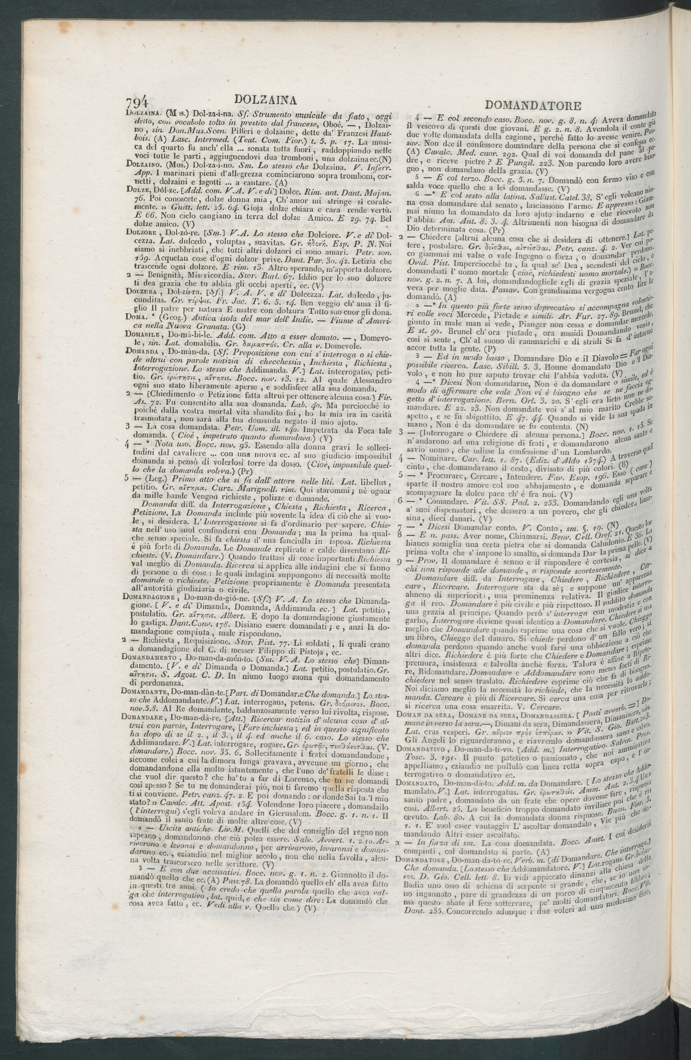 Domandacene , Do-man-da-gió-ne. {Sf] V. A. Lo stesso che Dùnanda-gione. { F. e di' Dimanda, Domanda, Addimauda ec. ] Lat. petitio ,postulatio. Gr. xtrr,ir,s. Albert. E dopo la domandagione giustamentelo gastiga. Dant.Conv. 1-8. Disiano essere domandati ; e , anzi la do-mandagione compiuta, male rispondono.