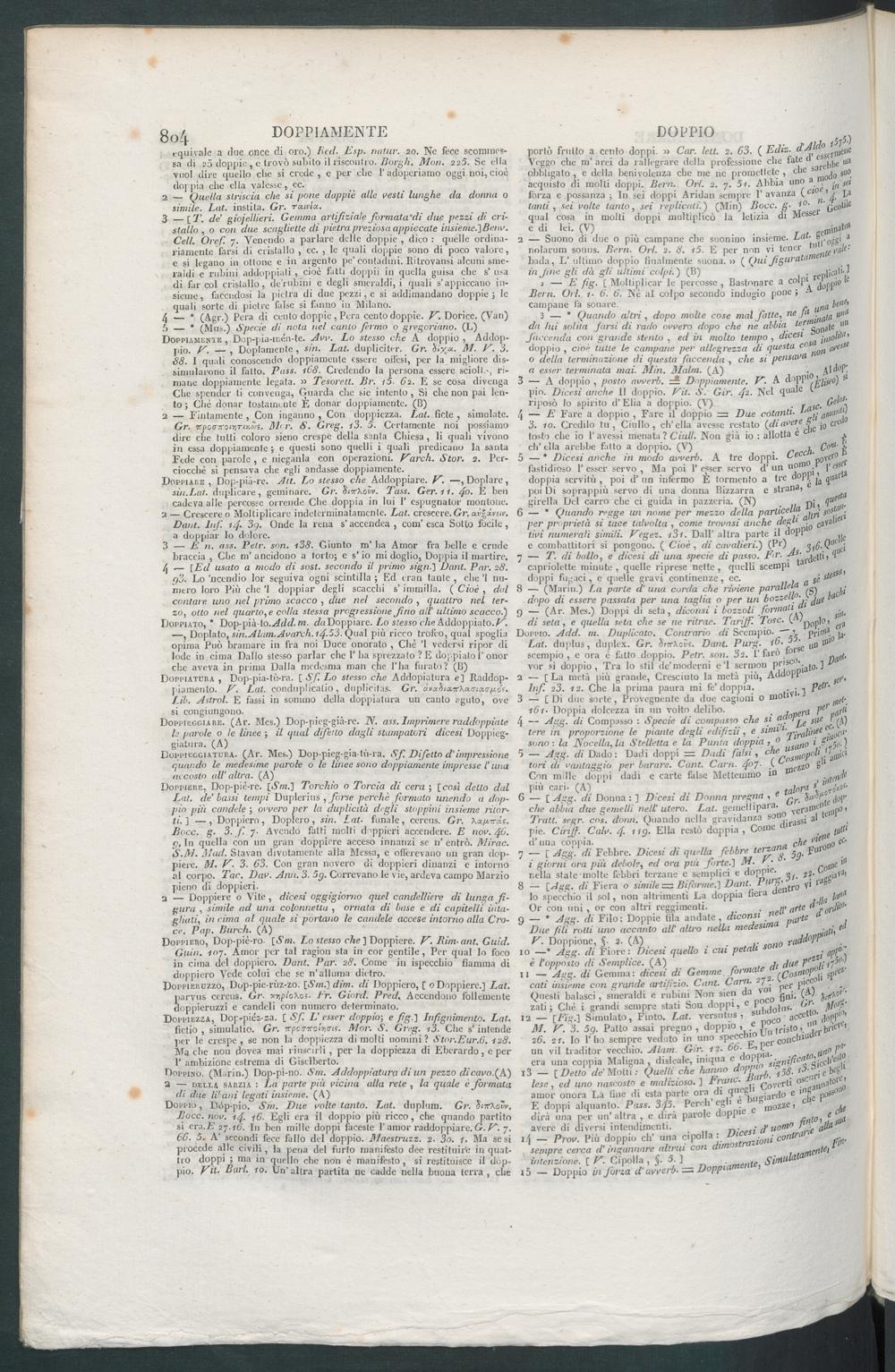 portò frutto a cento doppi. » Car. leu. 2. 63 . ( Echz. dVeggo che m’ arei da rallegrare della professione che fate u ^ u uobbligato, e della benivolcuza che me nc promettete , clic sal j 0 s uoacquisto di molli doppi. Beni. Ori. 2. 7. 5 i. Abbia uno > “ y„forza c possanza ; In sei doppi Aridan sempre l’avanza t»