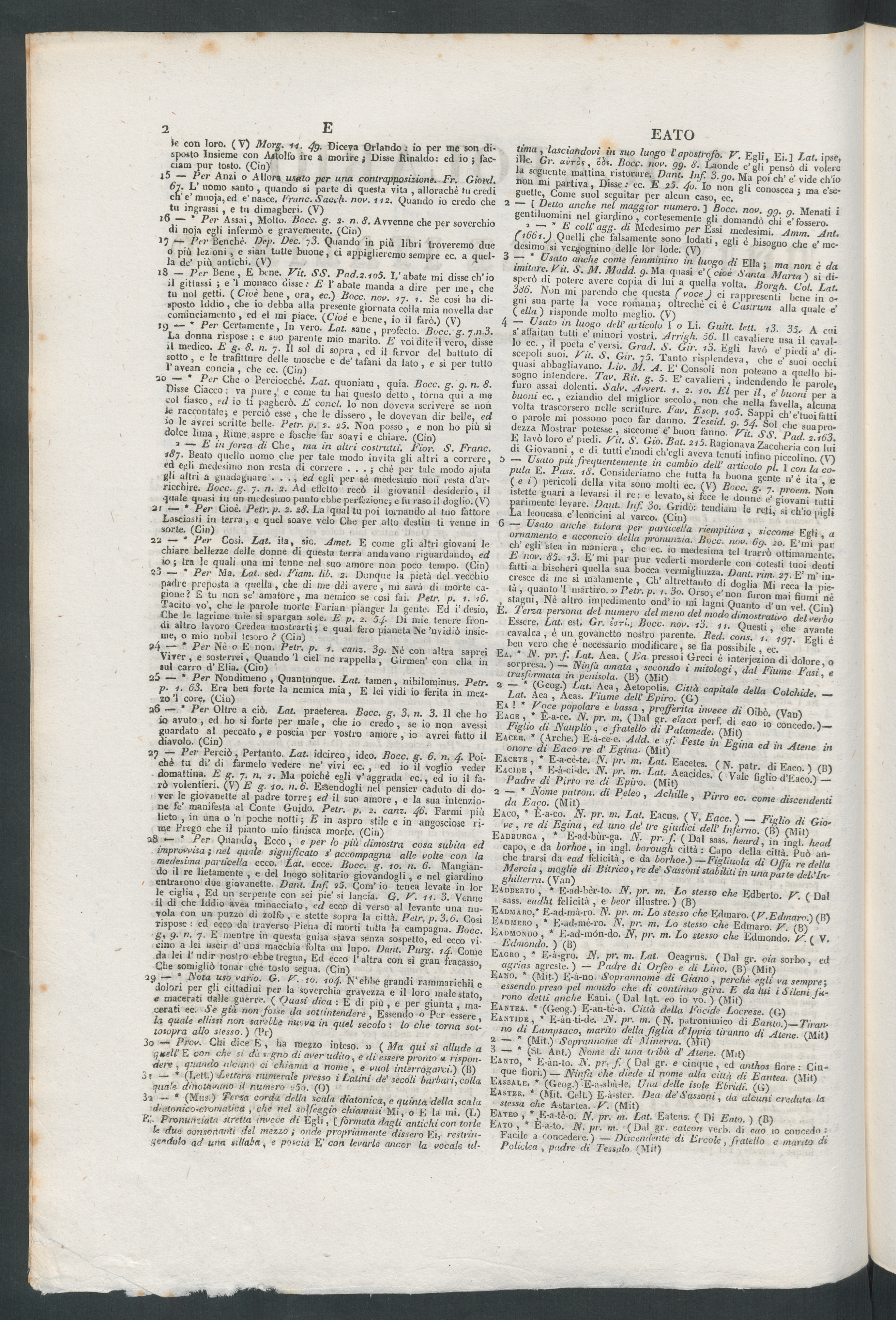 23 — * Per Cosi. Lai. ita, sic. Amet. E come gli altri giovani lechiare bellezze delle donne di questa terra andavano riguardando, edio ; tra le quali una mi tenne nel suo amore non poco tempo. (Cin)23 — ’ Per Ma. Lat. sed. Fiam. lib. 2. Dunque la pietà del vecchiopadre preposta a quella , che di me dèi avere, mi sarà di morte ca-gione? E tu non se’ amatore, ma nemico se così fai. Petr. p. 1. 16.Tacito vo’, che le parole morie Farian pianger la gente. Ed i’ desio,Che le lagrime mie si spargan sole. E p. 2. 5/. Di mie tenere fion-di altro lavoro Credea mostrarti ; e qual fòro pianeta Ne ’uvidiò insie-me, o mio nobil tesoro ? (Cin)