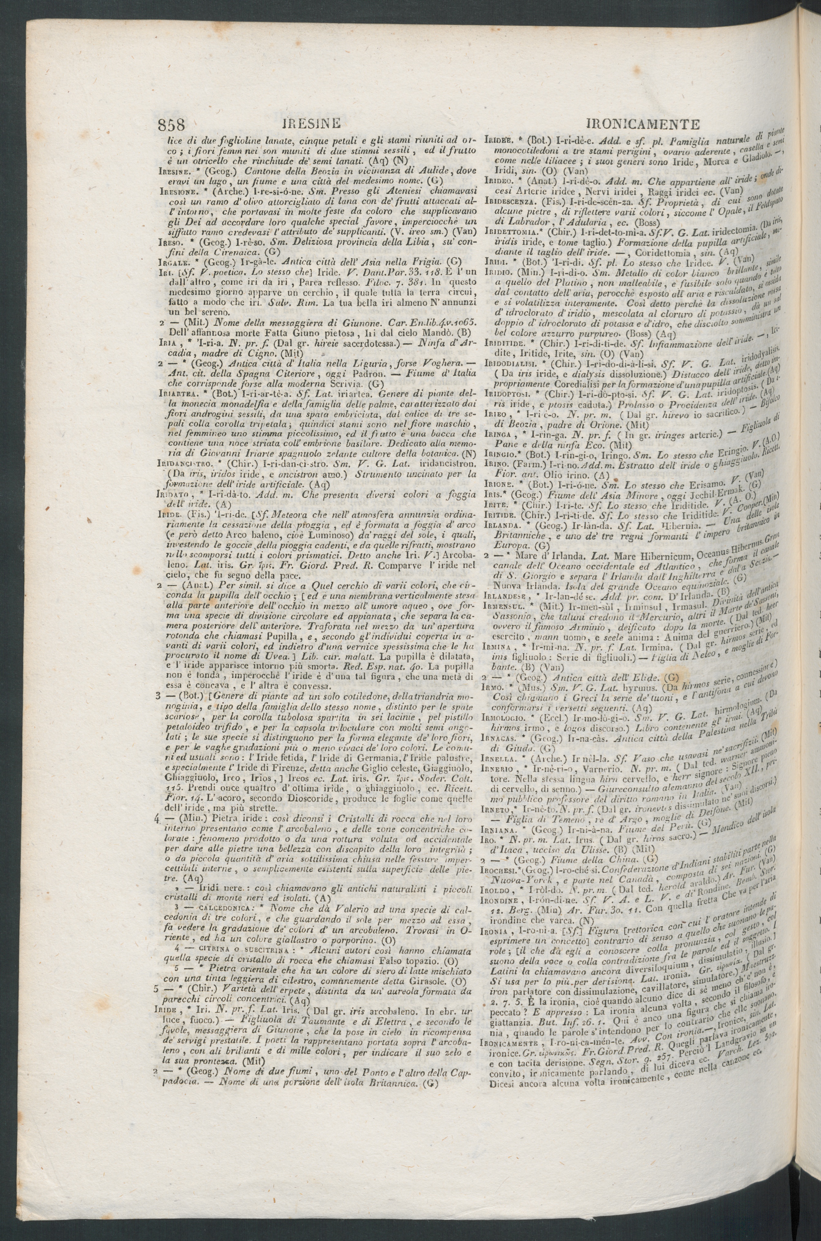 Irikuio.* (Bot.) I-rin-gi-o, Iringo. Sm. Lo stesso che Ei J ! %iuoh'Irino. (Farm.) I-rr^no. Add. m. Lstralto dell iride o