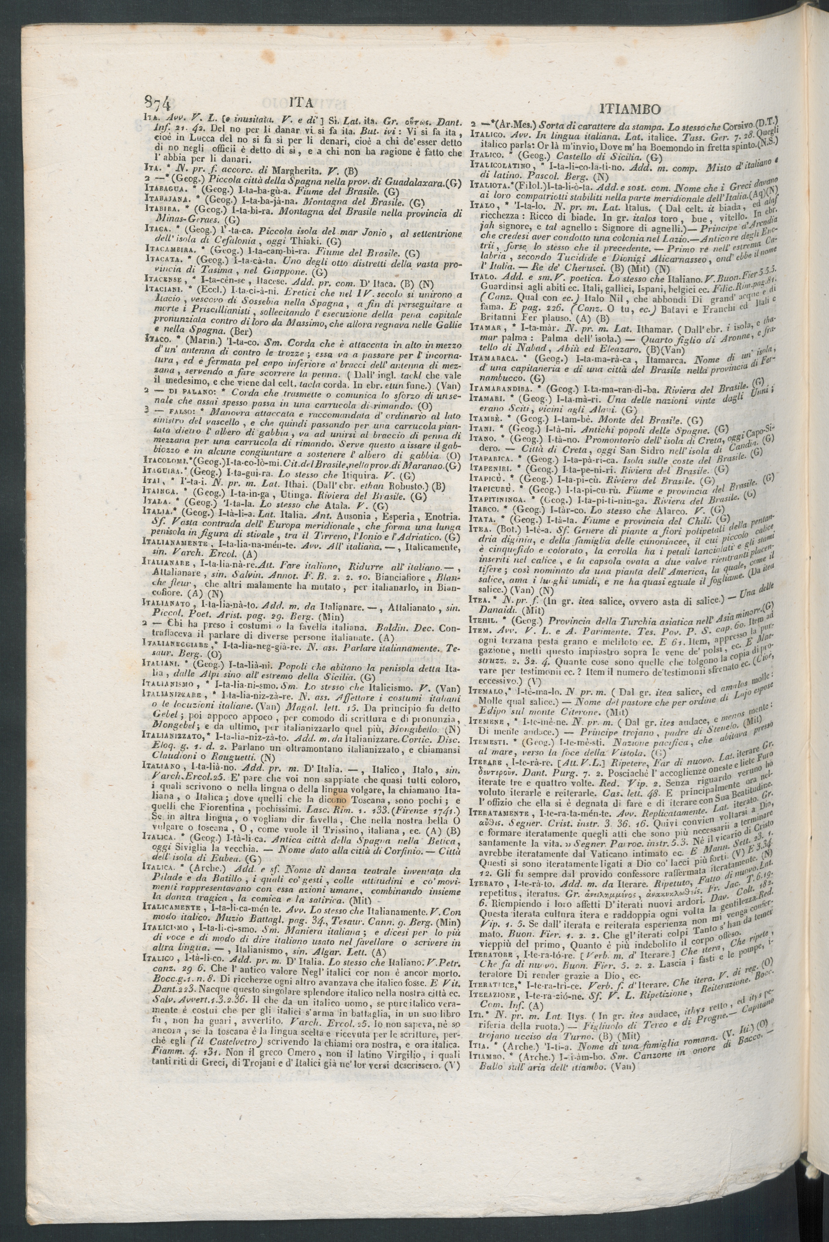 ItaUanecgiabb ,* I-ta-lia-neg-già-rc. N. ass. Parlare italiana mente. Te-saur. ISerg. (O)