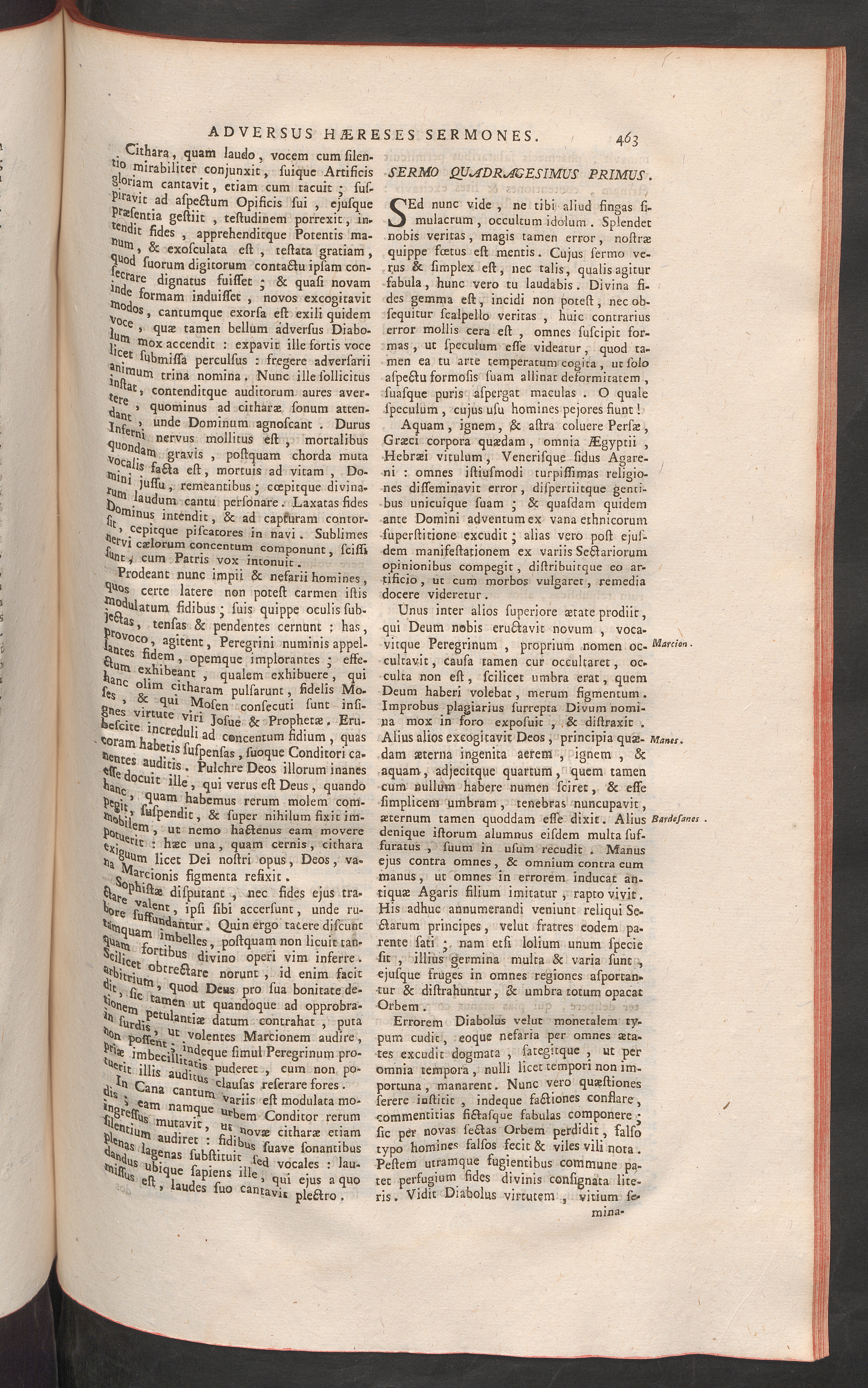 Unus inter alios superiore aetate prodiit,qui Deum nobis eructavit novum , voca-vitque Peregrinum , proprium nomen oc- Mafcion •cultavit, causa tamen cur occultaret, oc-culca non est, scilicet umbra erat, quemDeum haberi volebat, merum figmentum.Improbus plagiarius surrepta Divum nomi-na mox in foro exposuit , Sc distraxit ,