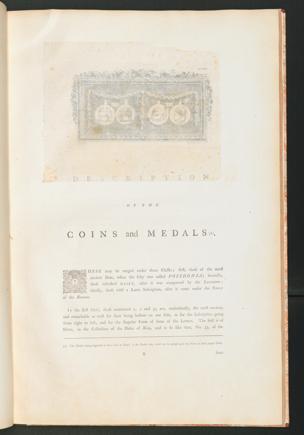 In the first Class, those numbered i, 2 and 35 are, undoubtedly, the most ancient,and remarkable as well for their being hollow on one Side, as for the Inscription goingfrom right to left, and for 'the singular Form of some of the Letters. The first is ofSilver, in the Collection of the Duke of No'ia^ and is so like that, No. 35, of the