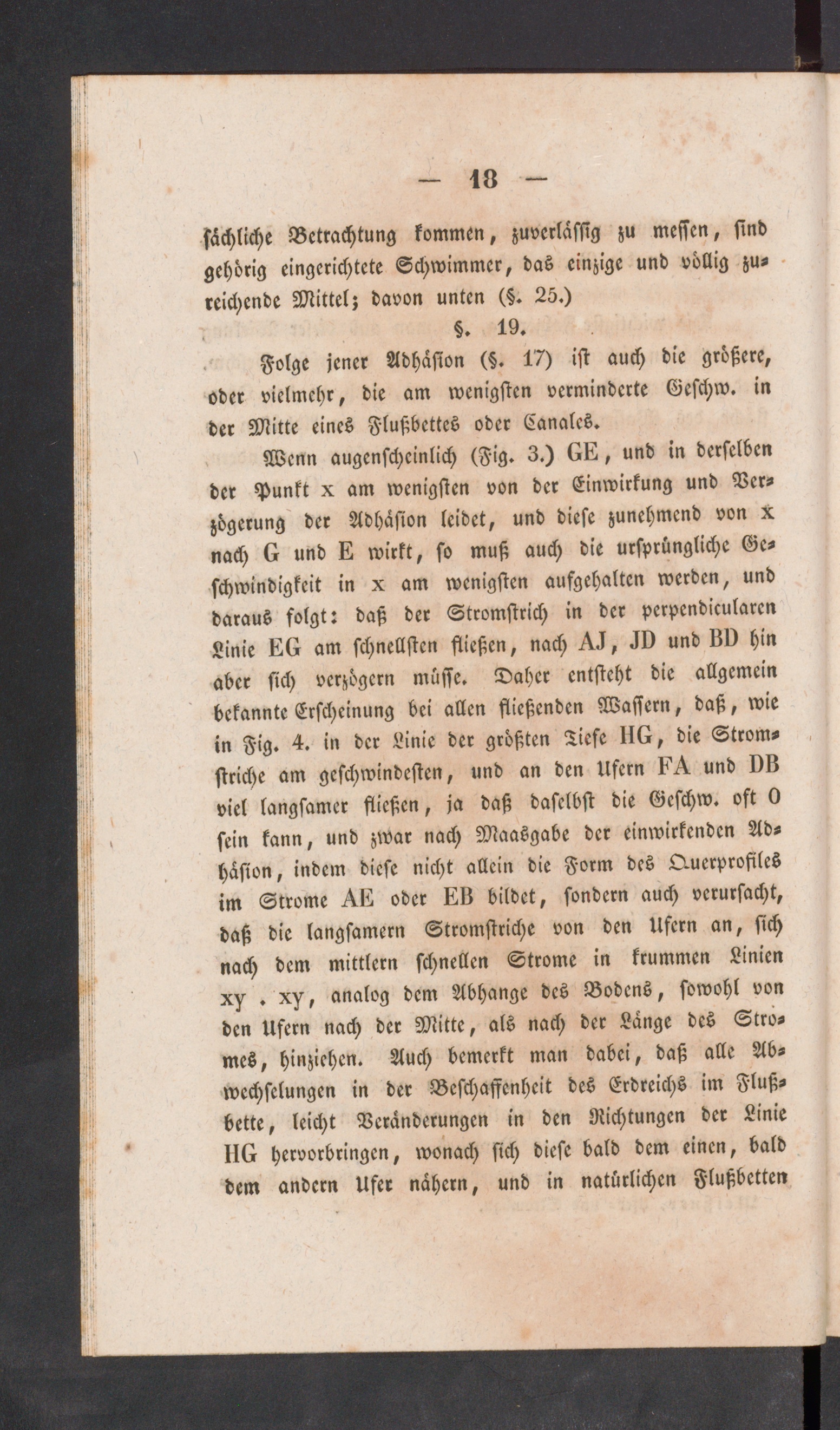 Folge jener Adhäsion (§. 17) ist auch die größere,oder vielmehr, die am wenigsten verminderte Gcschw. inder Mitte eines Flußbettes oder Canalcs.