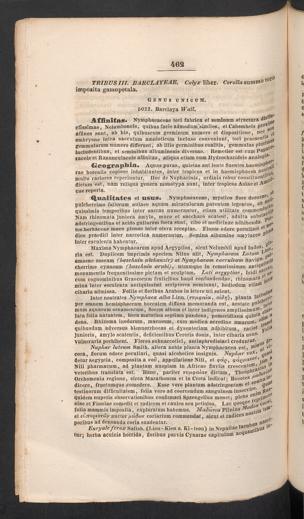 AffinitnS* Nymphaeaceae tori fabrica et seminum gtrnctnractissimae, Nelumboneis, quibus facie admodum^similes, etCabombeis P ro ** 0 iiaffines sunt, ab liis, quibuscum germinum numero et dispositione, ne® e [embryone intra saeculum amnioticum incluso conveniunt, tori praesenti*^gemmularum numero differunt, ab illis germinibus coalitis, gemmulasIncludentibus, et seminibus albuminosis diversae. Remotior est cum PaP*'raceis et Ranunculaceis affinitas, aliqua etiam cum Hydrocliarideis ;
