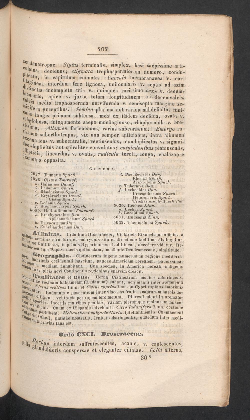 AfUinitas. Ordo liinc Droseraceis, Violarieis Bixaceisque affinis, aS)u Us seminis structura et embryonis situ et directione facillime distinguitur,'. c a tt Guttiferas, imprimis Ilypericineas et ad Lineas, accedere videtur. Ite-*° r est cum Papaveraceis quibusdam, mediante Dendromecone, similitudo.be a ,®reograi»hia. Cistinearum ingens numerus in regione mertiterra-primis occidentali nascitur, papeae Americani borealem, paucissimaemell iam inhabitant. Una species, in America boreali indigena,111 tropicis novi Continentis regionibus sparsim crescit.