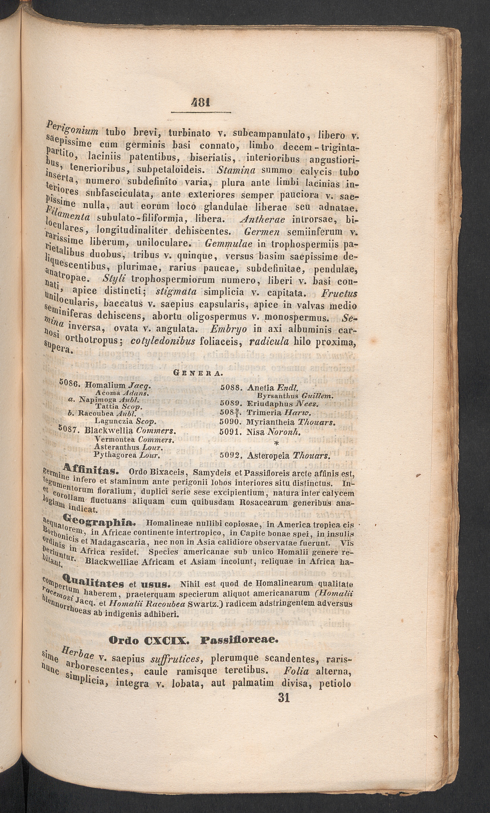 SetprJ^finitaS. Ordo Bixaceis, Samydeis et Passifloreis arcle affinis est,' e 6Uin 6 ' nfero et staminum ante perigonii lobos interiores situ distinctus. In-e t co ;otor„ m floralium, duplici serie sese excipientium, natura inter calycem'ogi,,, . am fluctuans aliquam cum quibusdam Rosacearum generibus ana-“ "dicat.