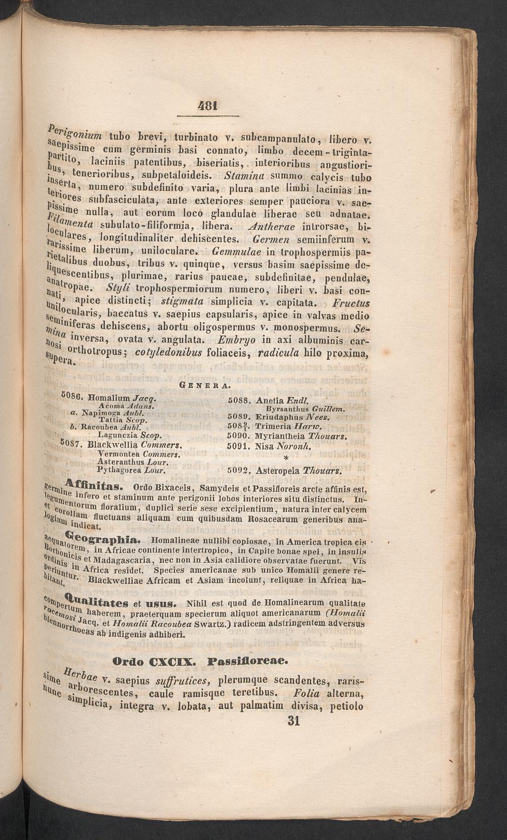 Ordo CXCIX. Passlfloreae.