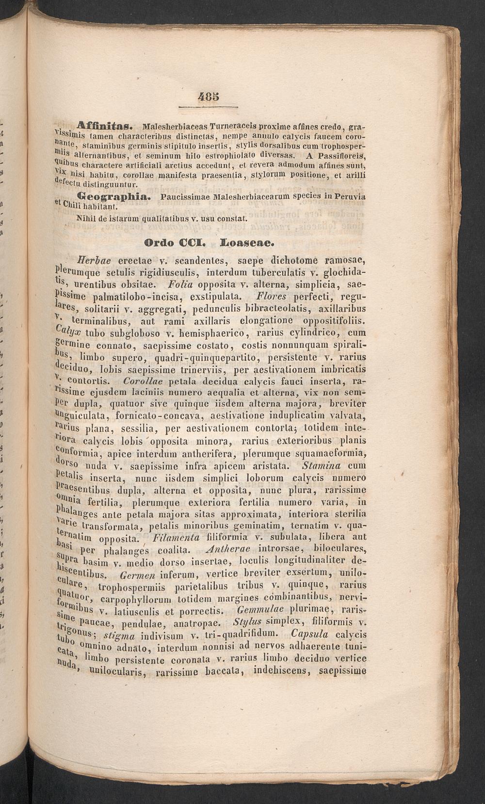 . , Affinitas. Malesherbiaceas Turneraceis proxime affines crefio, gra-•ssimis tamen characteribus distinctas, nempe annuto calycis faucem coro-ante, staminibus germinis stipituio insertis, stylis dorsalibus cum tropliosper-'*| s alternantibus, et seminum bilo estropliiolato diversas. A Passifloreig,ubibus cliaractere artificiali arctius accedunt, et revera admodum affines sunt,** nisi babitu, corollae manifesta praesentia, stylorum positione, et arillief ectu distinguuntur.