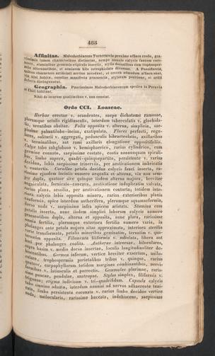 Herbae erectae v. scandentes, saepe dichotome ramosae,Pmrumque setulis rigidiusculis, interdum tuberculatis v. glochida-V?» urentibus obsitae. Folia opposita v. alterna, simplicia, sae-P ,s sime palmatilobo-incisa, exstipulala. Flores perfecti, regu-les, solitarii v. aggregati, pedunculis bibracleolatis, axillaribusterminalibus, aut rami axillaris elongatione oppositifoliis.a h°o tubo subgloboso v. hemisphaerico, rarius cylindrico, cumb c rmine connato, saepissime costato, costis nonnunquam spirali-, Us ; limbo supero, quadri-quinquepartito, persistente v. rariuse ciduo, lobis saepissime trinerviis, per aeslivationem imbricatiscontortis. Corollae petala decidua calycis fauci inserta, ra-'"'ssiine ejusdem laciniis numero aequalia et alterna, vix non sem-Pcr dupla, quatuor sive quinque iisdem alterna majora, breviter^guiculata, fornicato-concava, aeslivatione induplicatim valvata,^‘‘•us plana, sessilia, per aestivationem contorta; totidem inle-ri0r a calycis lobis 'opposita minora, rarius exterioribus planis®°nformia, apice interdum antherifera, plerumque squainacformia,° rs ° nuda v. saepissime infra apicem aristata. Stamina cumJ et >ilis inserta, nunc iisdem simplici loborum calycis numero* a csentibus dupla, alterna et opposita, nunc plura, rarissimefertilia, plerumque exteriora fertilia numero varia, in