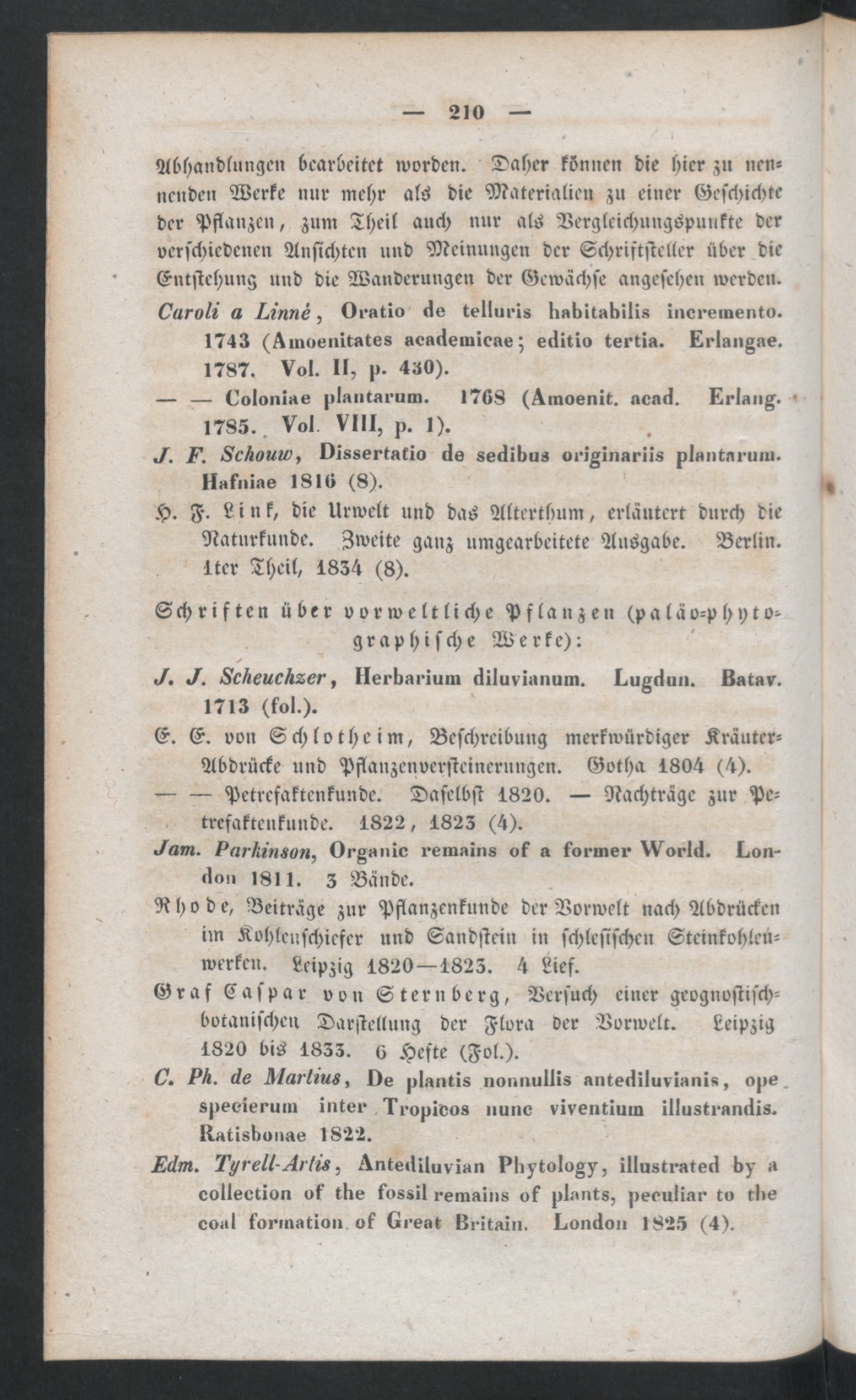 Abhandlungen bearbeitet worden. Daher können die hier zu nen-nenden Werke mir mehr als die Materialien zu einer Geschichteder Pflanzen, zum Theil auch nur als Vergleichungspunkte derverschiedenen Ansichten und Meinungen der Schriftsteller über dieEntstehung und die Wanderungen der Gewächse angesehen werde»,a , Oratio cks telluris liabitabilis ineremento.