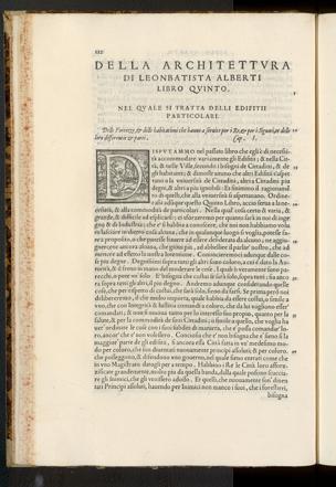JISpVTAM MO nel paſſato libro che egli& di neceſsi-ta accommodare variamente gli Edifitii;& nella Cit-ta,& nelle Ville, ſecondo i biſogni de Cittadini,& deeli habitanti;& dimoſtrammo che altri Edifitii s'afpettano a la vniuerfità de Cittadini, altri a Cittadini piudegni,& altri a piu ignobili: Et finimmo il ragionamẽto di quelli, che alla vniuerſità fi aſpettauano. Ordine-—raſsi adũque queſto Quinto Libro, accio ſerua a la ne-