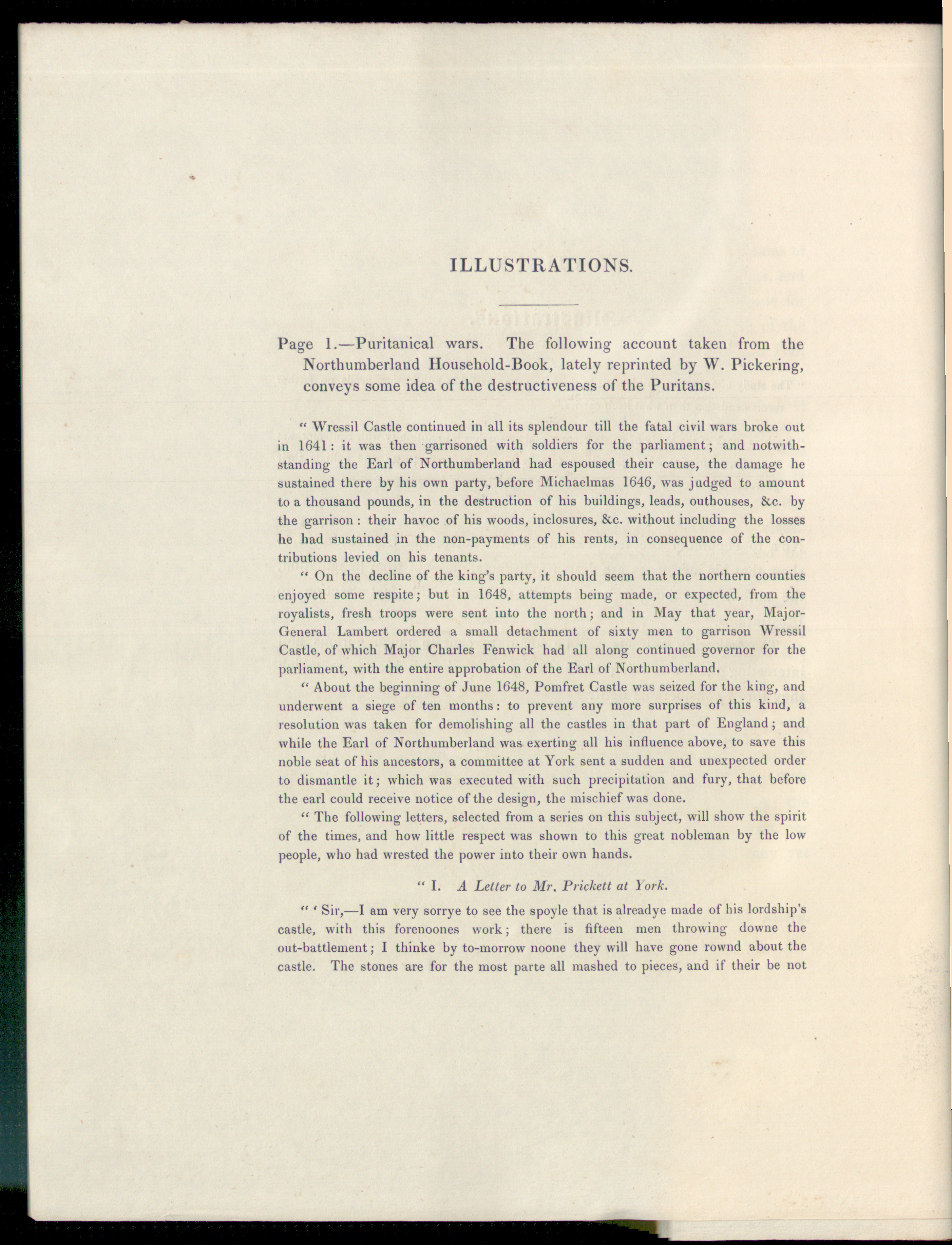 Page 1.—Puritanical wars. The following account taken from theNorthumberland Household-Book, lately reprinted by W. Pickering,conveys some idea of the destructiveness of the Puritans.