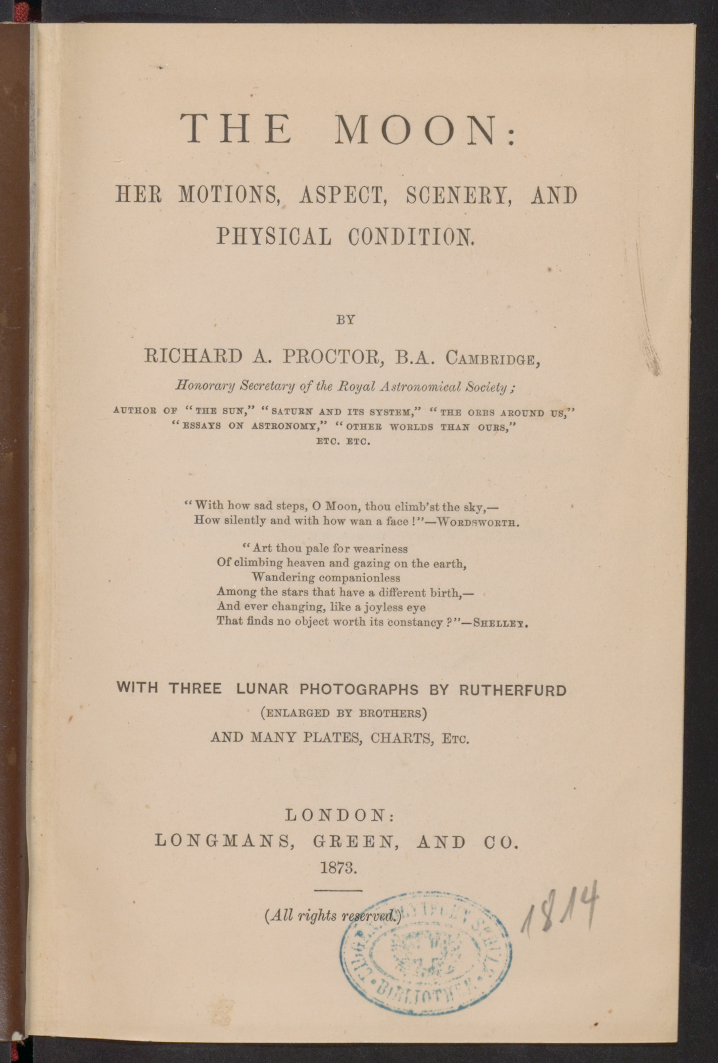 WITH THREE LUNAR PHOTOGRAPHS BY RUTHERFURD
