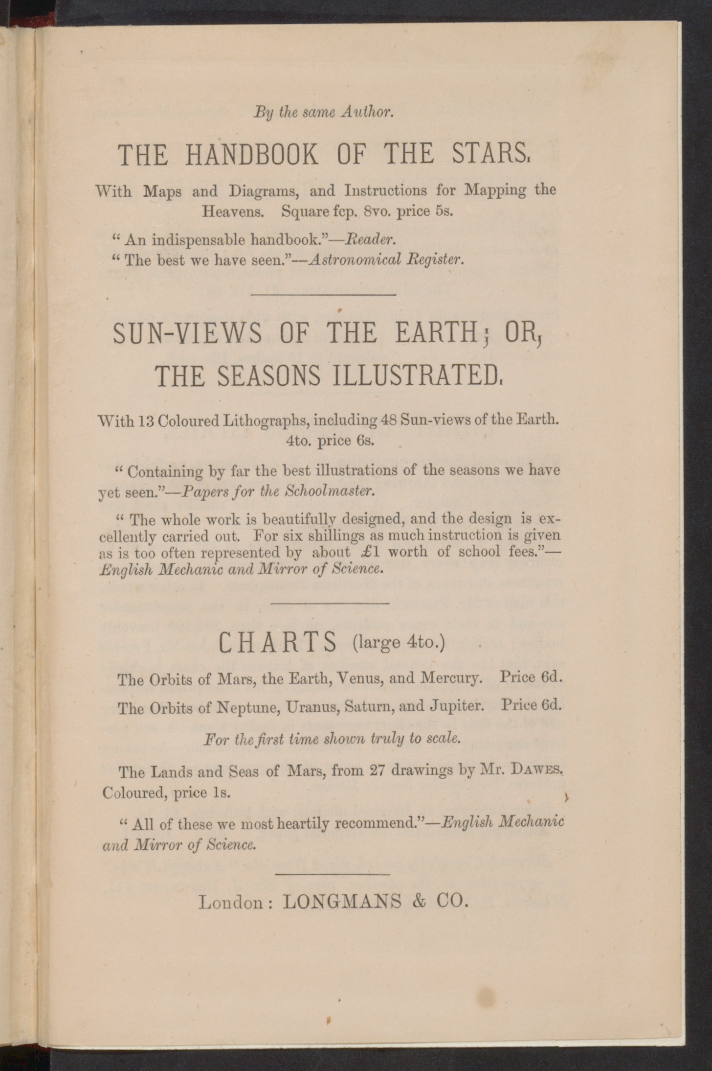 With Maps and Diagrams, and Instructions for Mapping theHeavens. Square fcp. 8vo. price 5s.