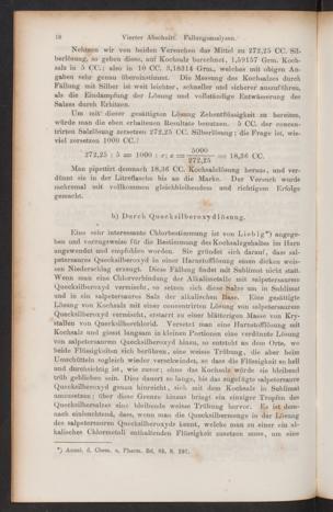 Man pipettirt demnach 18,36 CC. Kochsalzlösung heraus, und ver-dünnt sie in der Litreflasche bis an die Marke. Der Versuch wurdemehremal mit vollkommen gleichbleibendem und richtigem Erfolgegemacht.