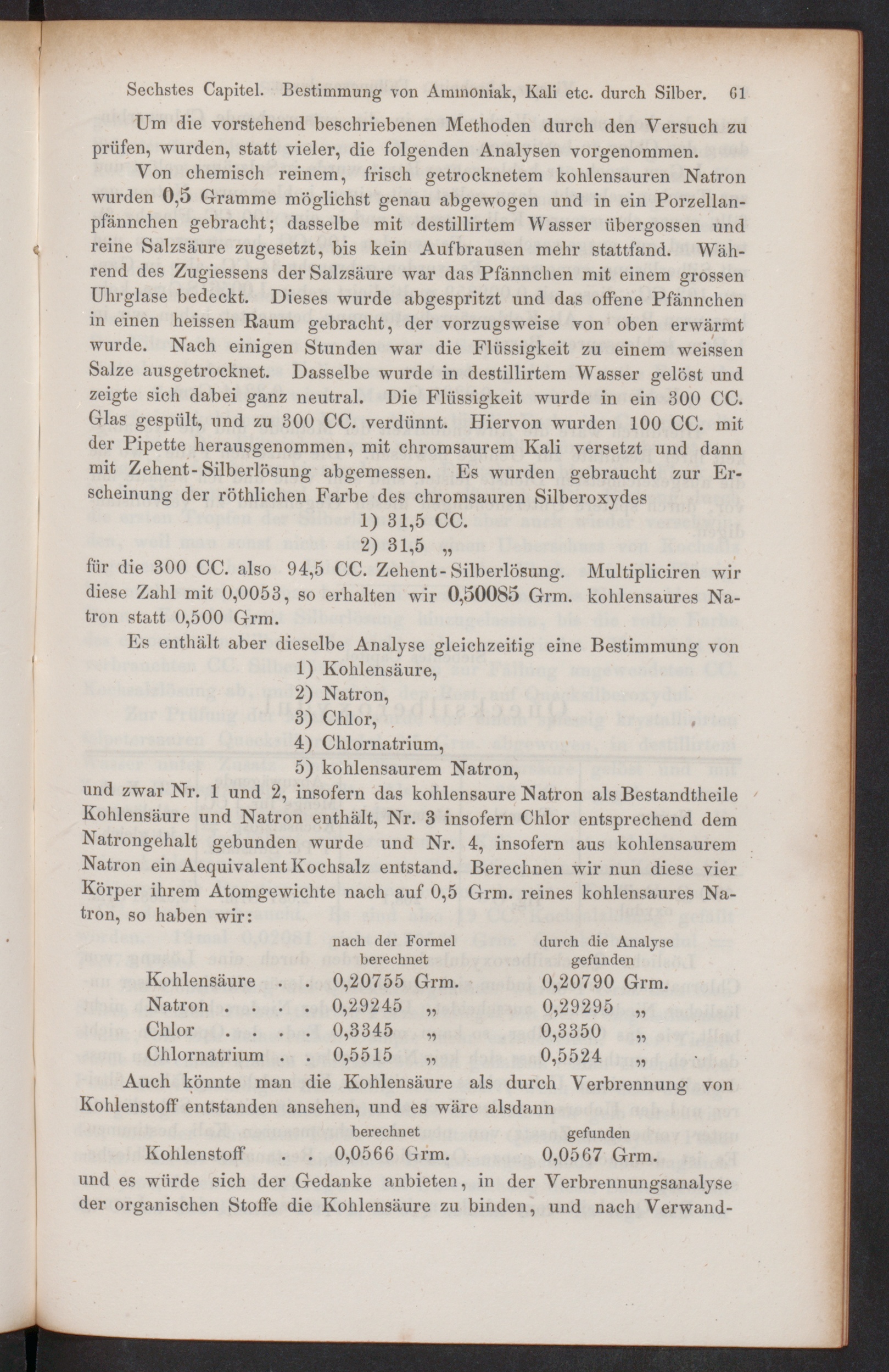 Sechstes Capitel. Bestimmung von Ammoniak, Kali etc. durch Silber. Gl