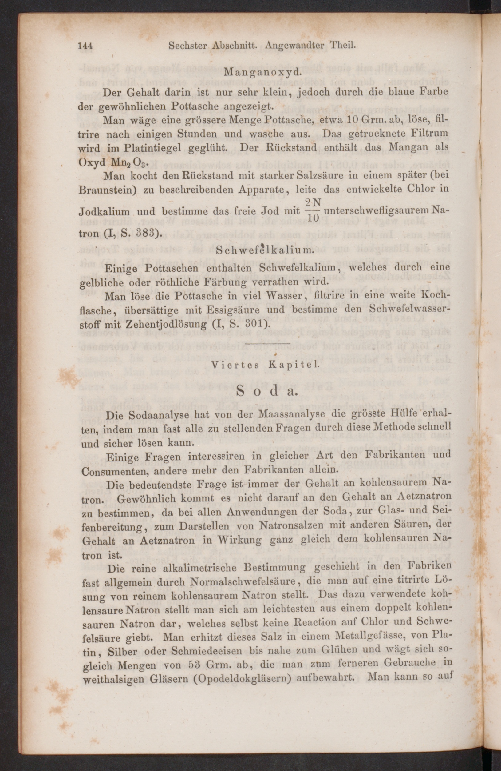 Die Sodaanalyse hat von der Maassanalyse die grösste Hülfe erhal-ten, indem man fast alle zu stellenden Fragen durch diese Methode schnellund sicher lösen kann.
