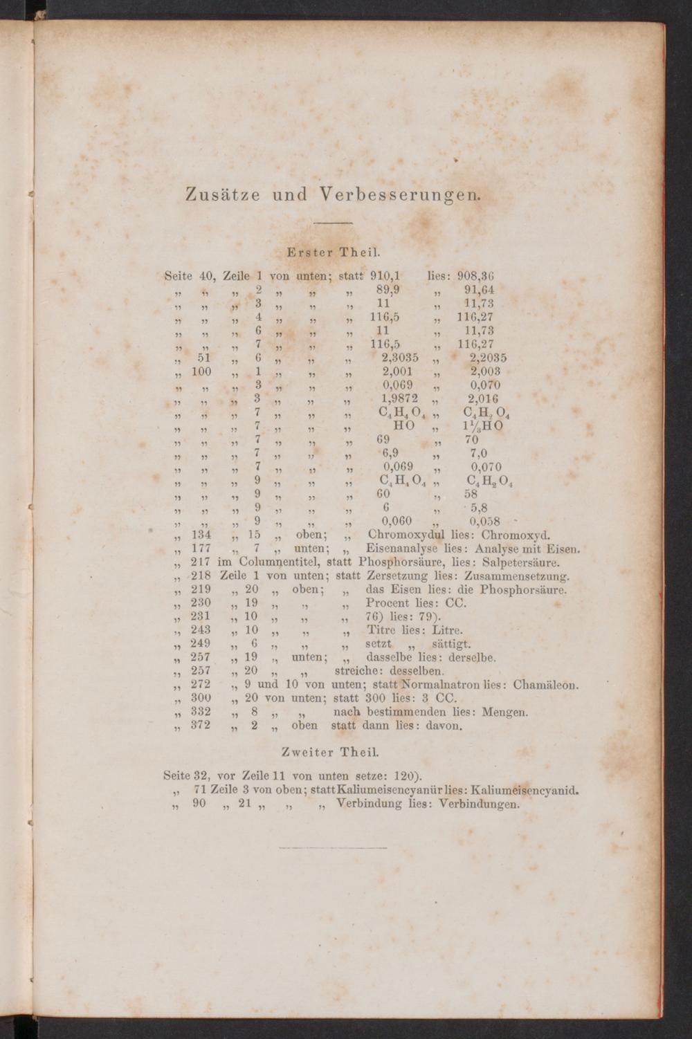 177 „ 7 „ unten; „ Eisenanalyse lies: Analyse mit Eisen.