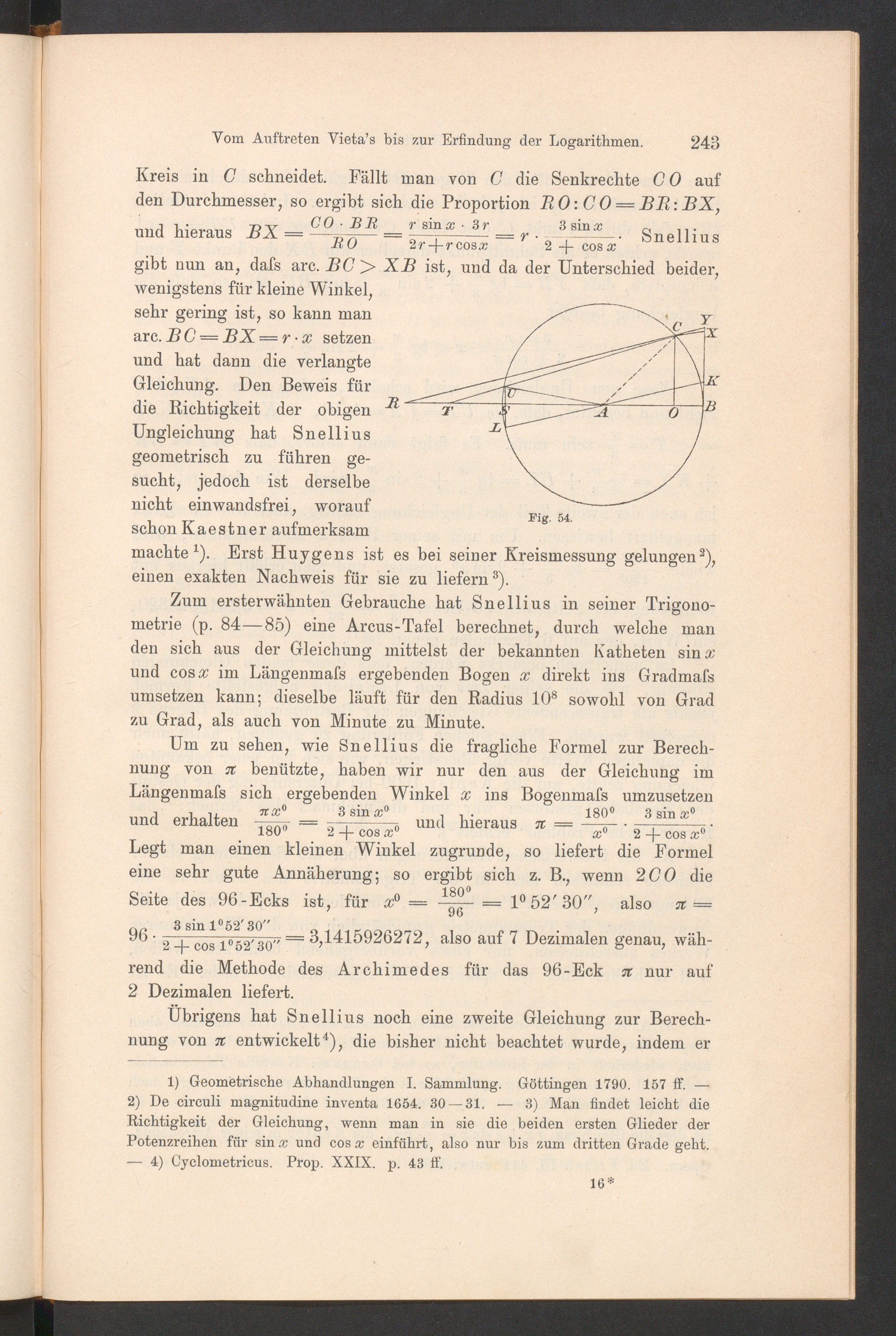 2 4- cosT° 52 '30” — : 3,1415920272, also auf 7 Dezimalen genau, wäh-rend die Methode des Archimedes für das 96-Eck st nur auf2 Dezimalen liefert.