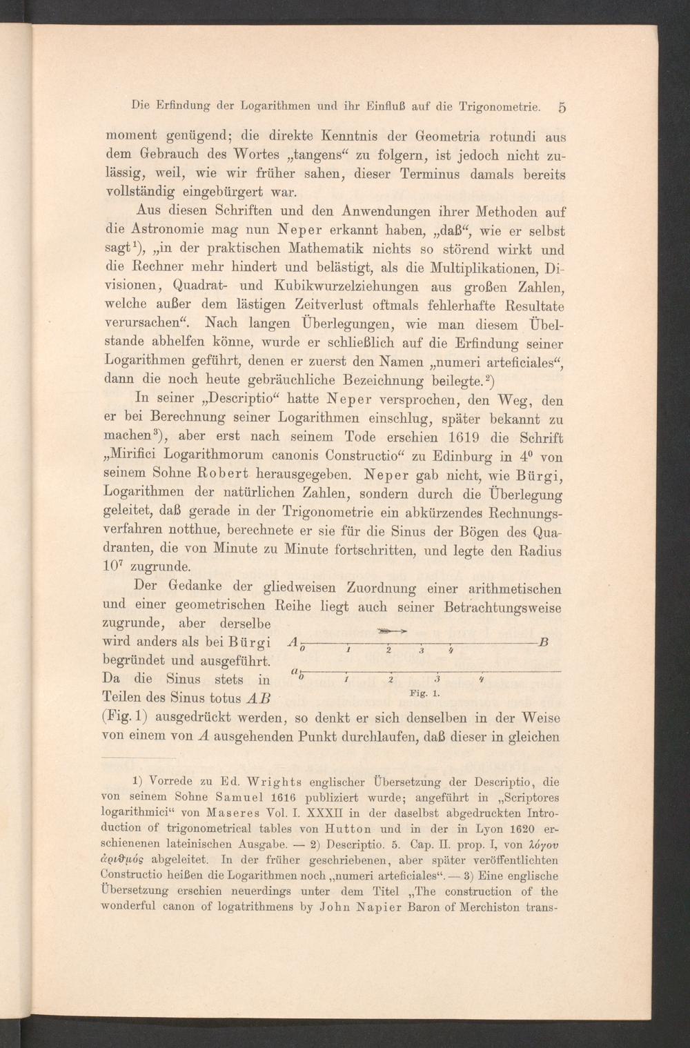 Die Erfindung der Logarithmen und ihr Einfluß auf die Trigonometrie. 5