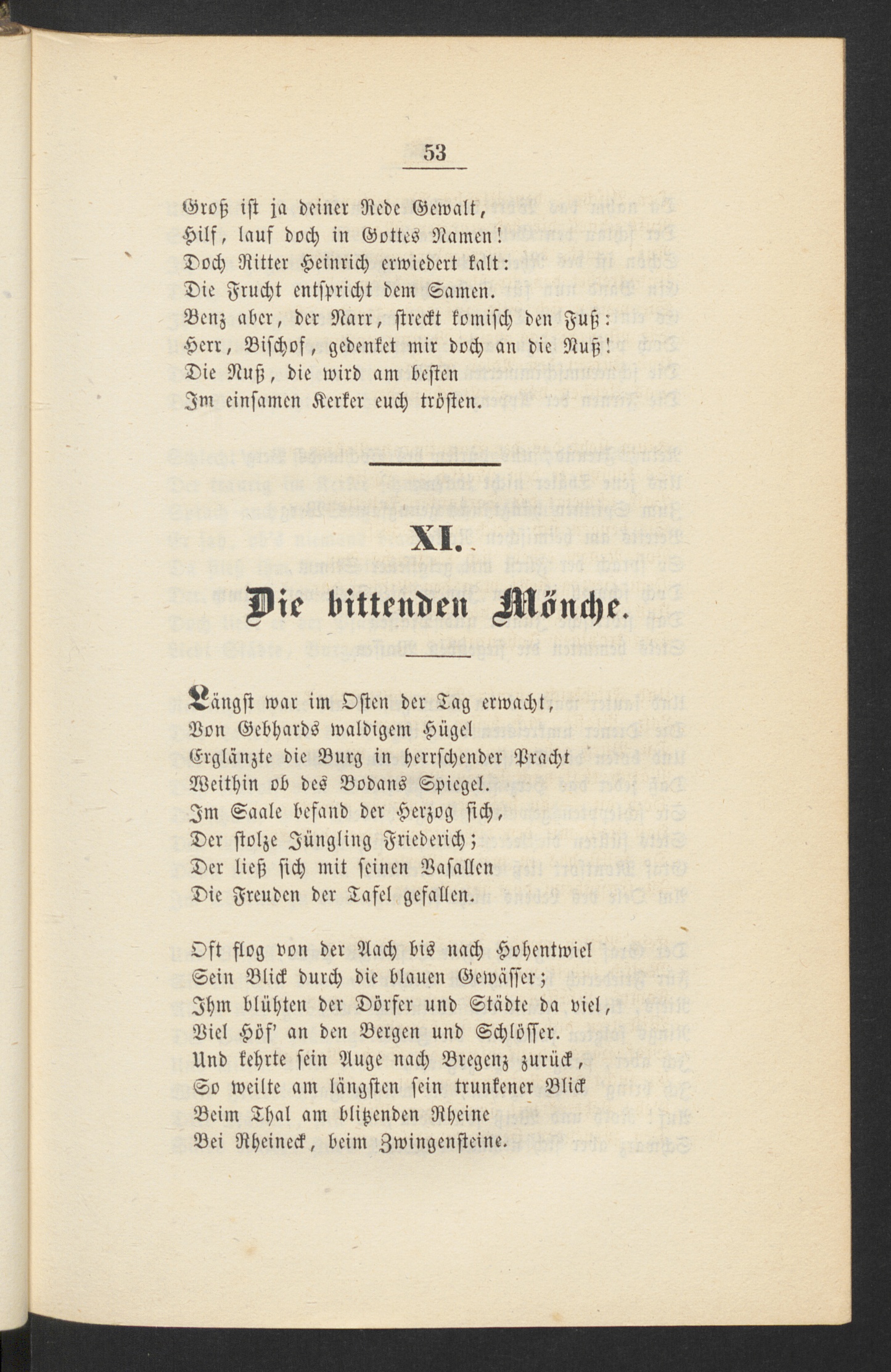 Von Gebhards waldigem HügelErglänzte die Burg in herrschender PrachtWeithin ob des Bodans Spiegel.