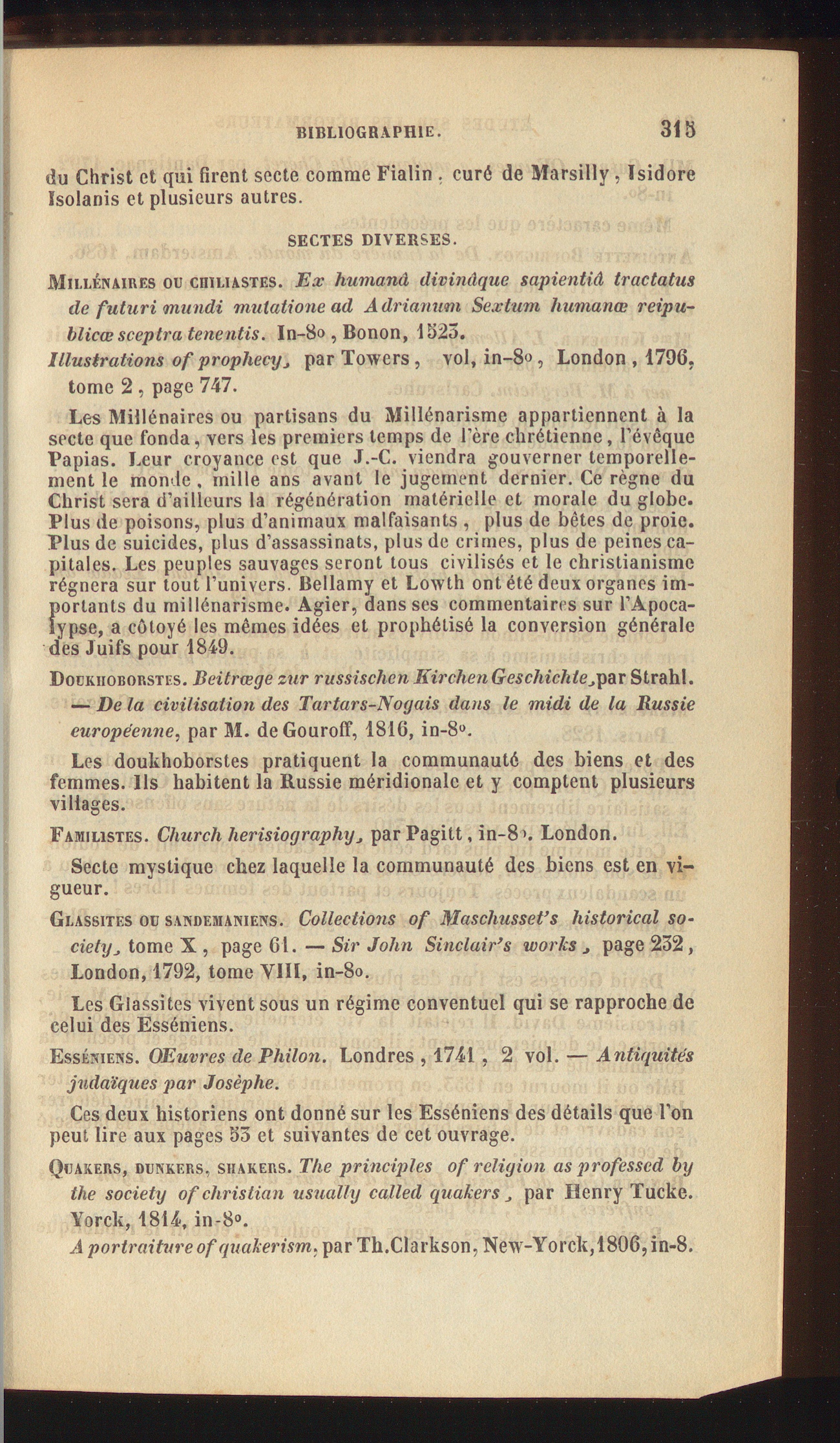 Quakers, dunkf.rs, shakers. The principles of religion as professed bythe society of Christian usuulty called quakers , par Henry Tucke.Yorck, 1814, in-8°.