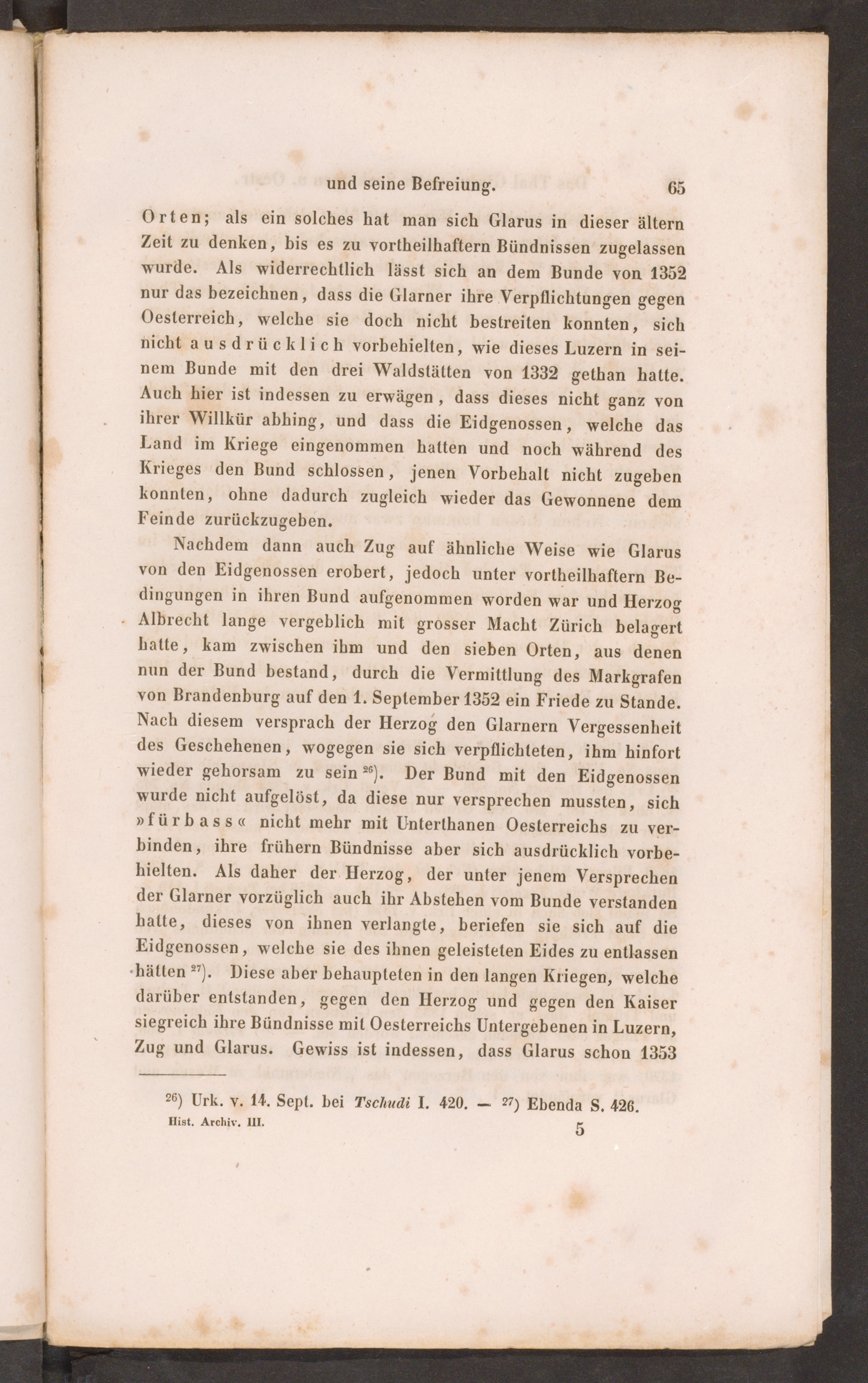 26 ) Urk. v. 14. Sept. bei Tschudi I. 420. — T ‘) Ebenda S. 428.