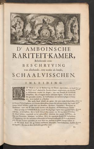 IT Werk is van de Beschryving der Dieren afgezöndert , en heeft fyteivmde Tytel van d’ Amboinsche Rariteit-Kamer aangenomen, om datdaer^^*"in beichreeven worden de dingen, zoo van lévende als levenlooièSchepselen» die, of wegens hunne zeltzaame figuur, of om datze zel-den gevonden werden, de Liefhebbers tot rariteiten plegen te bewa-ren, en is verdeelt in z Boeken.