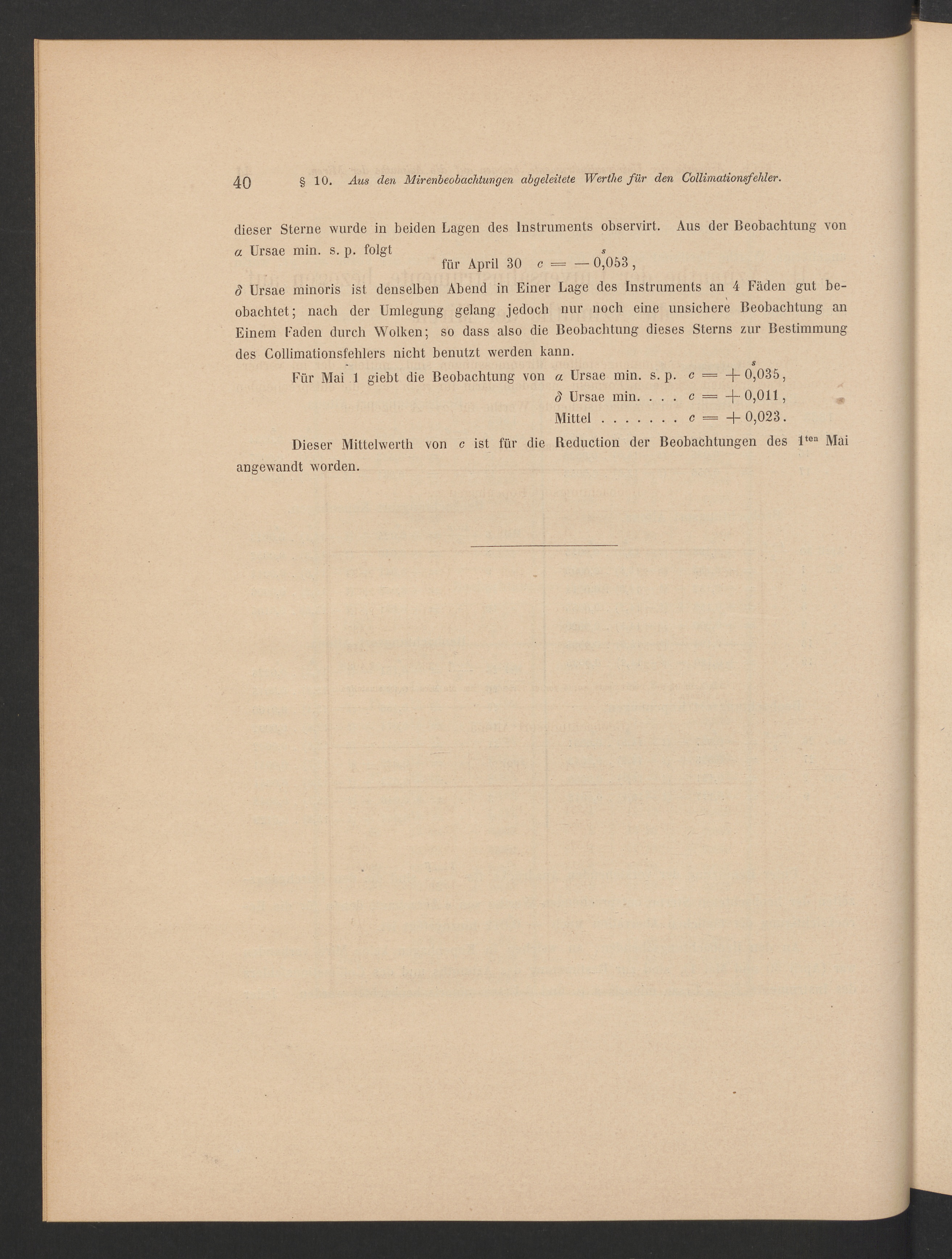 Dieser Mittelwerth von c ist für die Reduction der Beobachtungen des l tei1 Maiangewandt worden.
