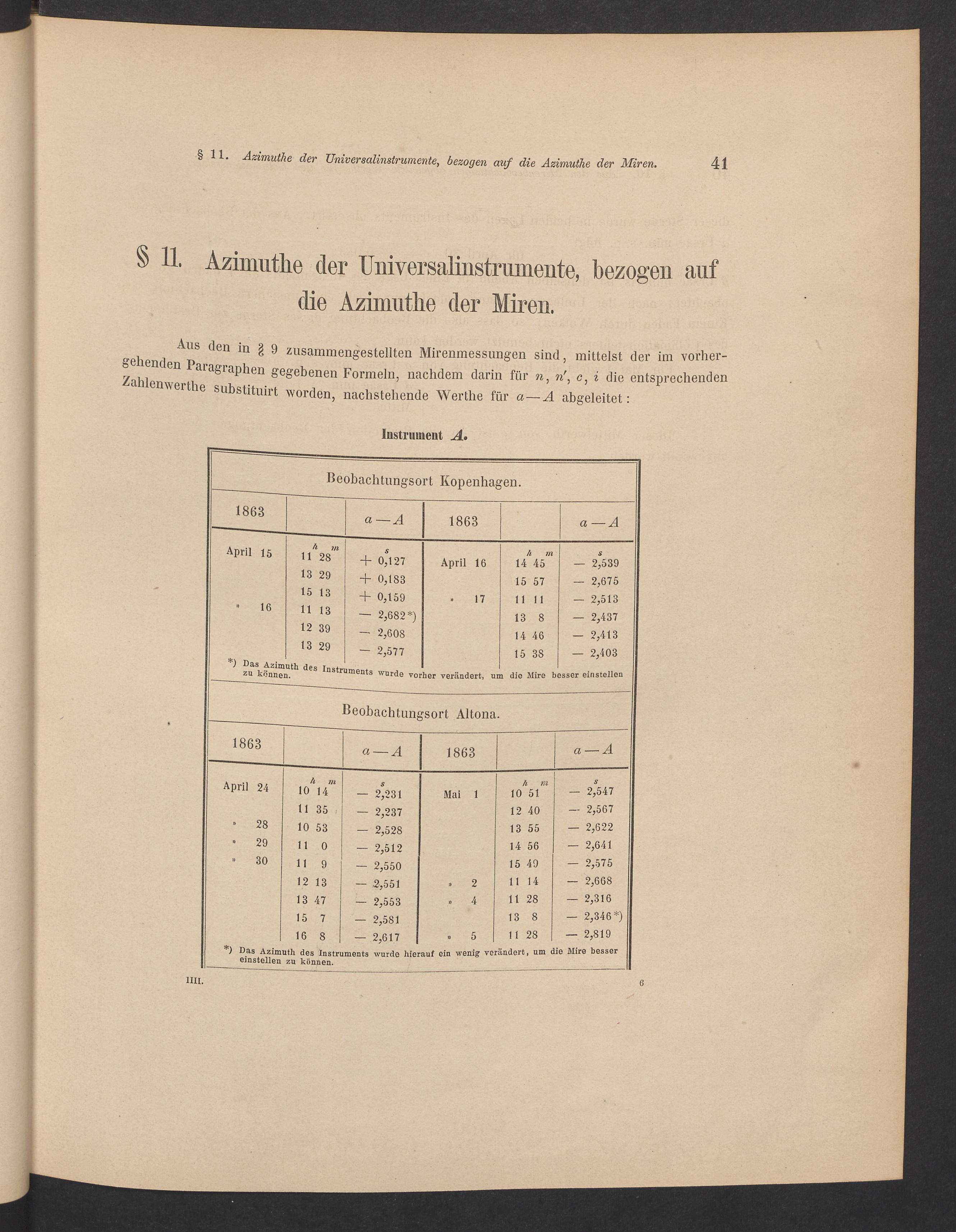 § 11. Aziumthe cler Universalinstramente, bezogen aufdie Azimuthe der Miren.