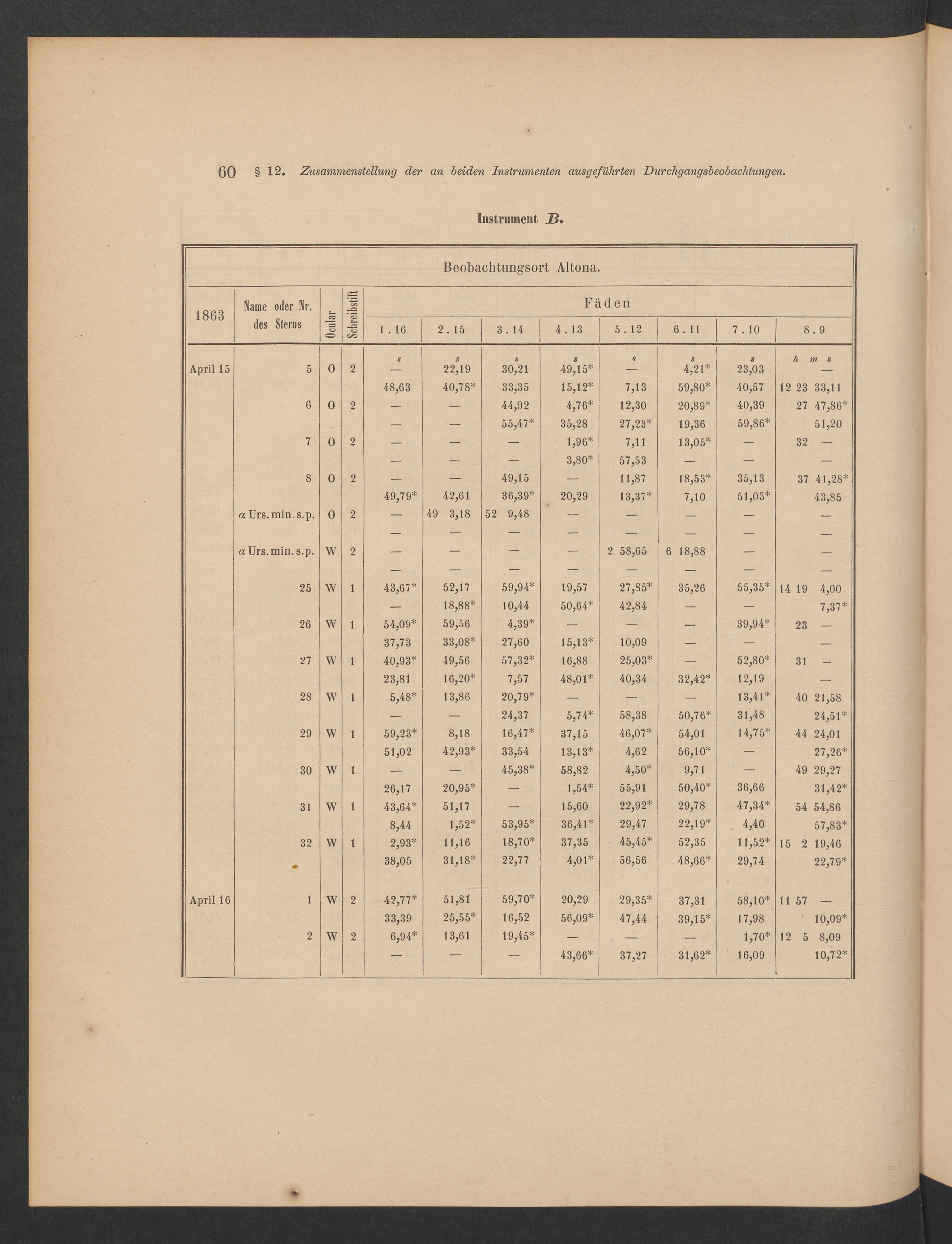 §12. Zusammenstellung der an beiden Instrumenten ausgeführten Durchgangsbeobachtungen.
