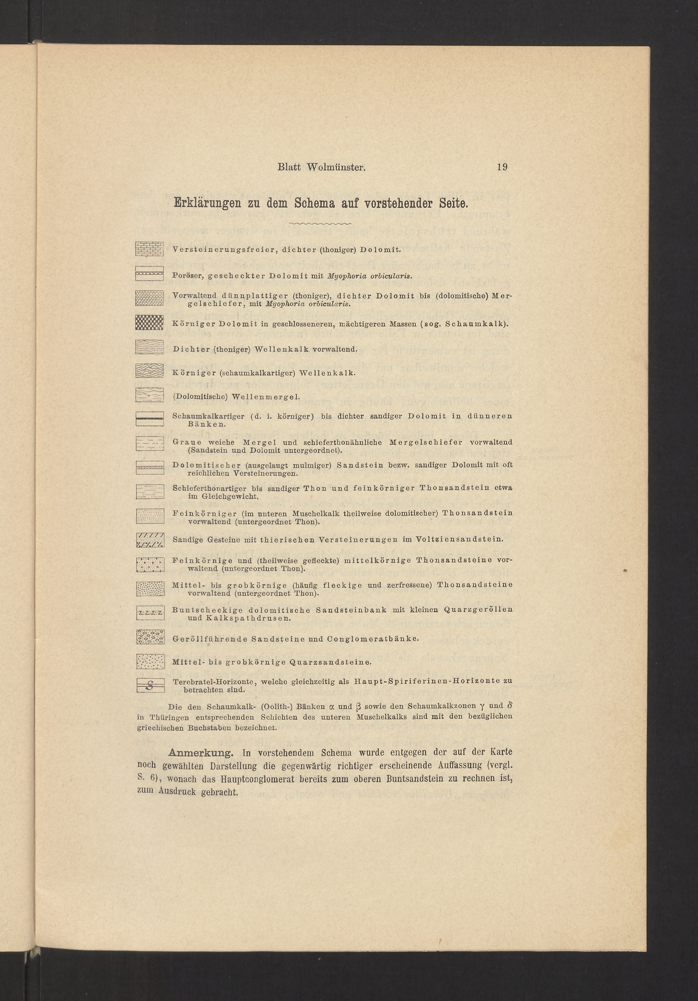 Anmerkung. In vorstehendem Schema wurde entgegen der auf der Kartenoch gewählten Darstellung die gegenwärtig richtiger erscheinende Auffassung (vergl.s - 6), wonach das Hauptconglomerat bereits zum oberen Buntsandstein zu rechnen ist,zum Ausdruck gebracht.