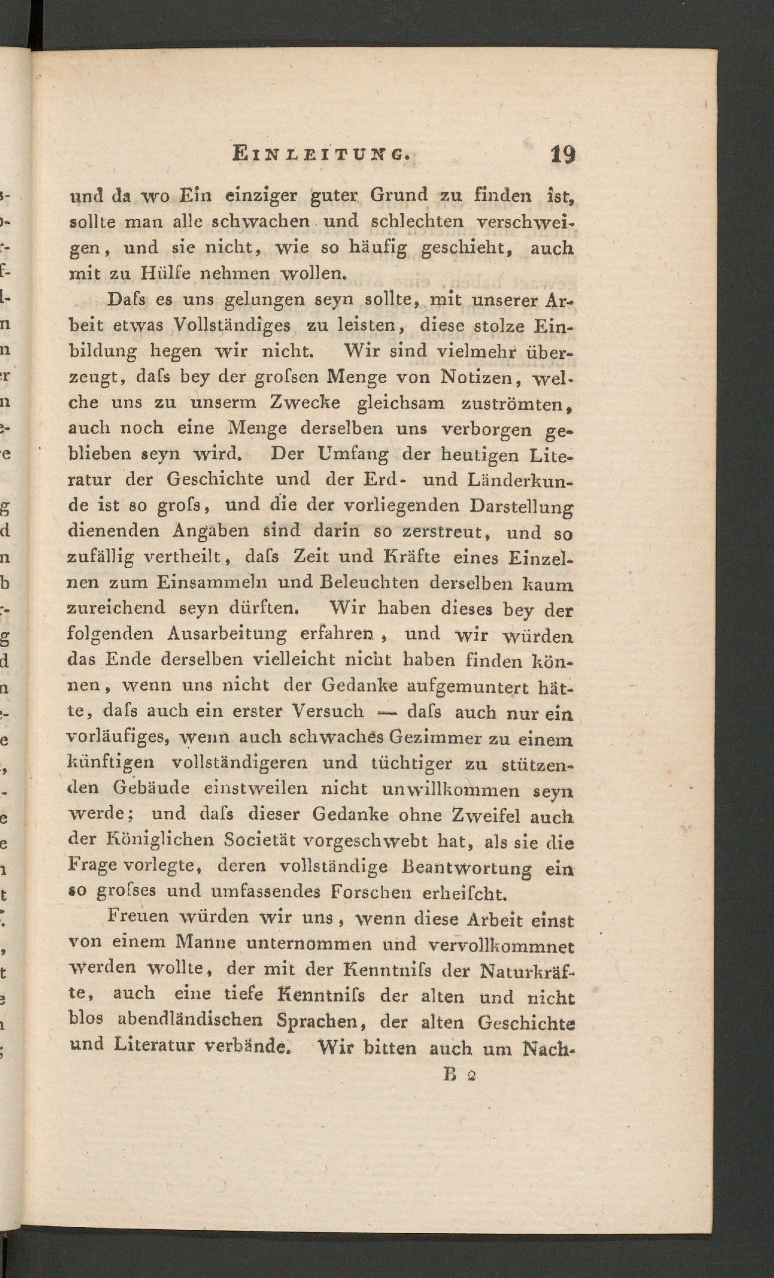 Dafs es uns gelungen seyn sollte, mit unserer Ar-beit etwas Vollständiges zu leisten, diese stolze Ein-bildung hegen wir nicht. Wir sind vielmehr über-zeugt, dafs bey der grofsen Menge von Notizen, wel-che uns zu unserm Zwecke gleichsam zuströmten,auch noch eine Menge derselben uns verborgen ge-blieben seyn wird. Der Umfang der heutigen Lite-ratur der Geschichte und der Erd- und Länderkun-de ist so grofs, und die der vorliegenden Darstellungdienenden Angaben sind darin so zerstreut, und sozufällig vertheilt, dafs Zeit und Kräfte eines Einzel-nen zum Einsammeln und Beleuchten derselben kaumzureichend seyn dürften. Wir haben dieses bey derfolgenden Ausarbeitung erfahren , und wir würdendas Ende derselben vielleicht nicht haben finden kön-nen , wenn uns nicht der Gedanke aufgemuntert hät-te, dafs auch ein erster Versuch — dafs auch nur einvorläufiges, wenn auch schwaches Gezimmer zu einemkünftigen vollständigeren und tüchtiger zu stützen-den Gebäude einstweilen nicht unwillkommen seynwerde; und dafs dieser Gedanke ohne Zweifel auchder Königlichen Societät vorgeschwebt hat, als sie dieFrage vorlegte, deren vollständige Beantwortung einso grofses und umfassendes Forschen erheifcht.