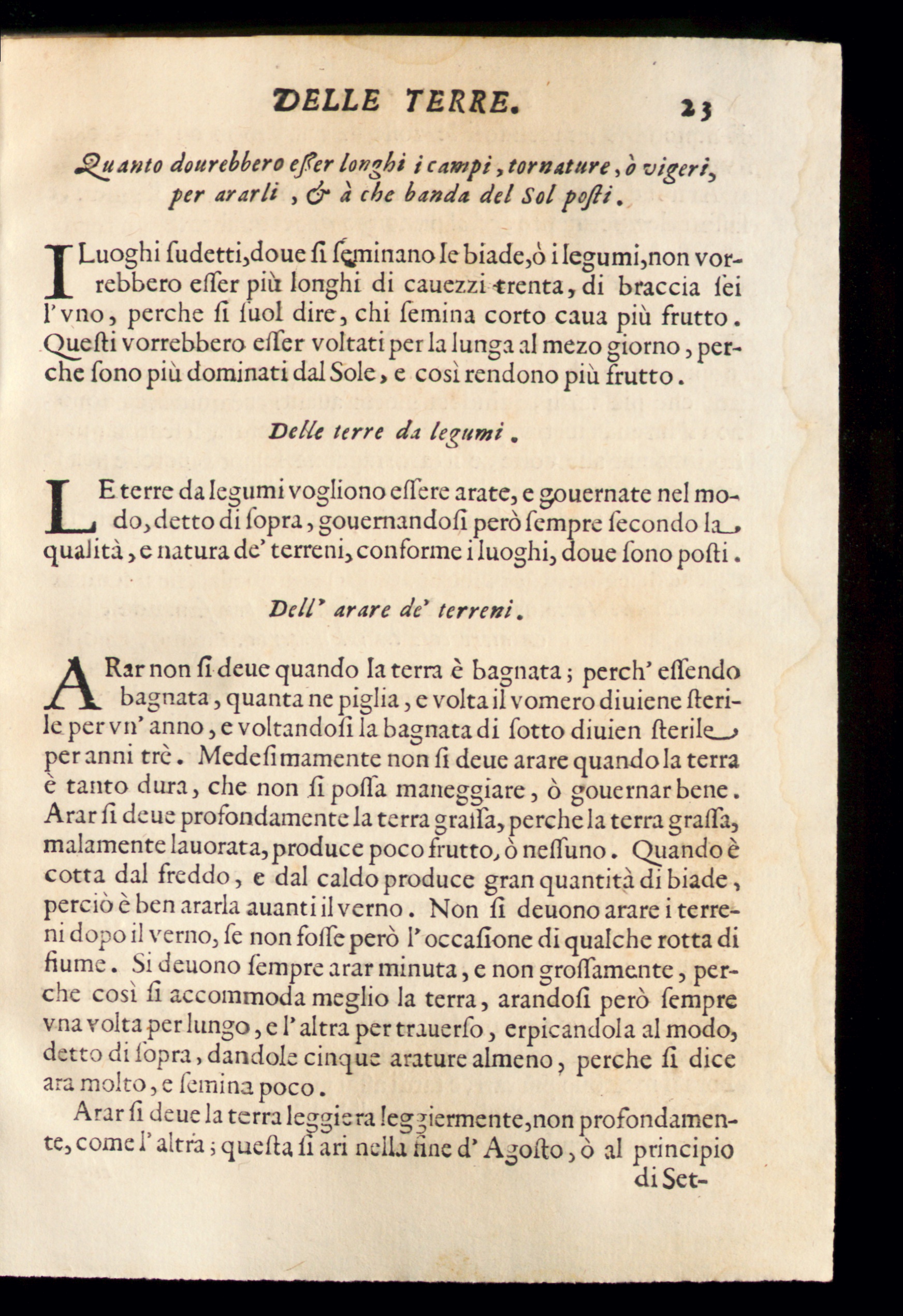 Arar si deue la terra leggiera Ieggiermente,non profondamen-te, come l'altra ; questa li ari nella fine d'Agosto, ò al principio