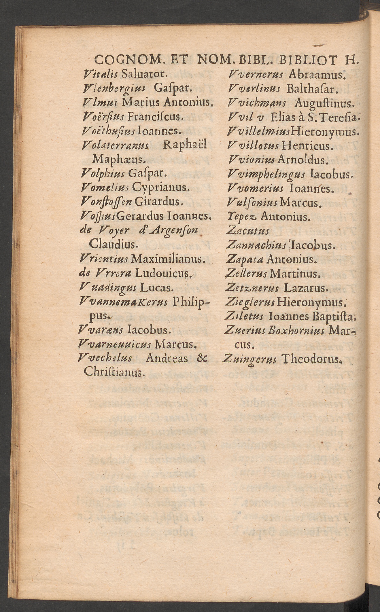 Vitalis Saluator.Vlenbergius Gafpar.Vlmus Marius Antonius.Voerftus Francifcus.Voethufius Ioannes.Volaterranus RaphacIMaphaus.
