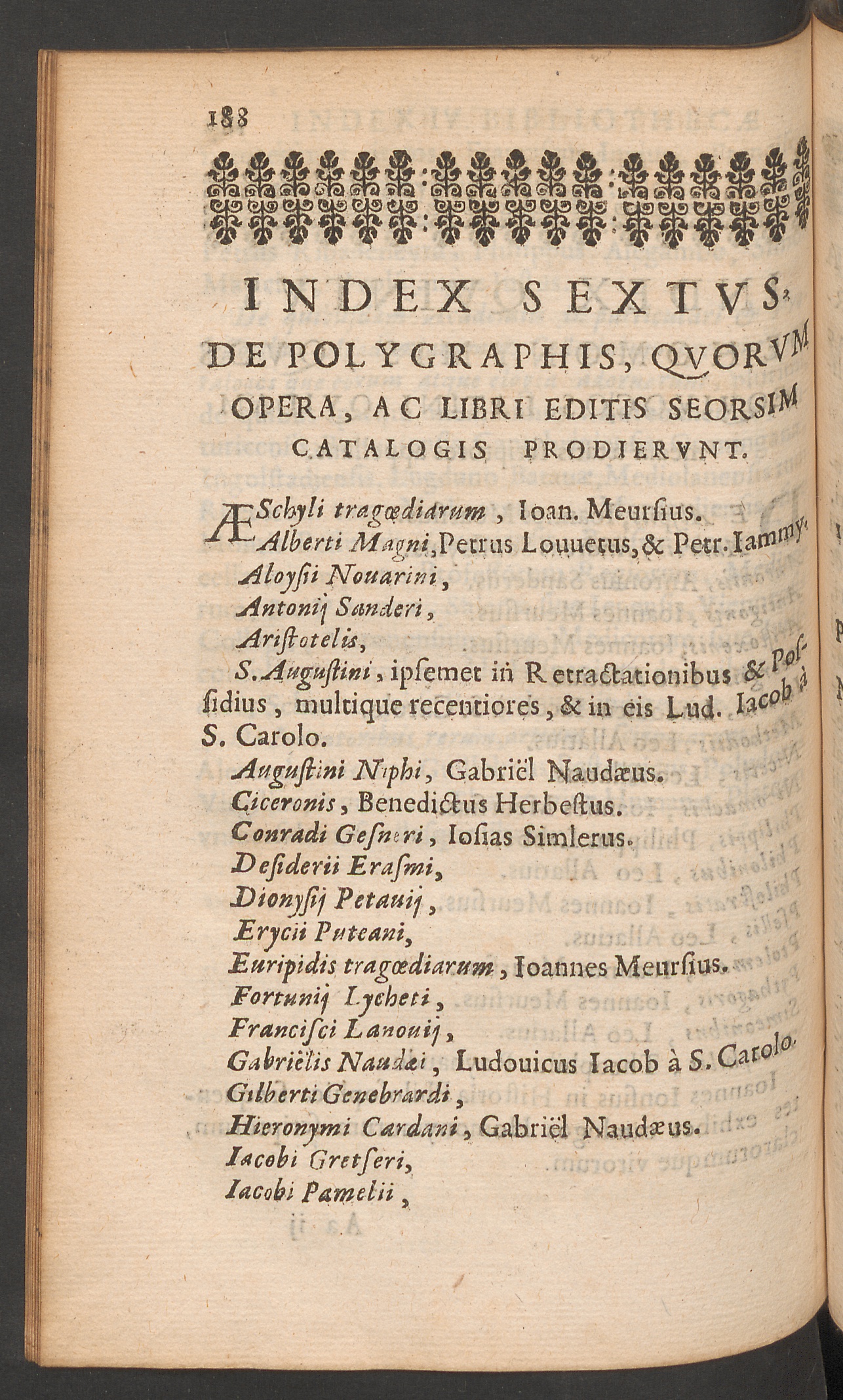 DE POLYGRAPHIS, Q.yOR'^OPERA, AC LIBRI EDITIS SEORSI**CATALOGIS PRODIERVNT.