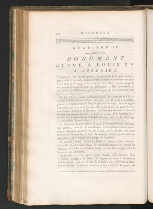 Bordeaux , une des plus grandes, des plus belles & des plus commer-çantes villes du royaume, forma en 1728 le dessein de construire une Placeíur son port, Sc d’y ériger une statue équestre de Sa Majesté , pour marque deson amour Sc de son attachement. En conséquence, les Maire, Sous - Maire ScJurats firent une délibération qui fut homologuée par arrêt du Conseil d’étatle 7 février 1730 (a).