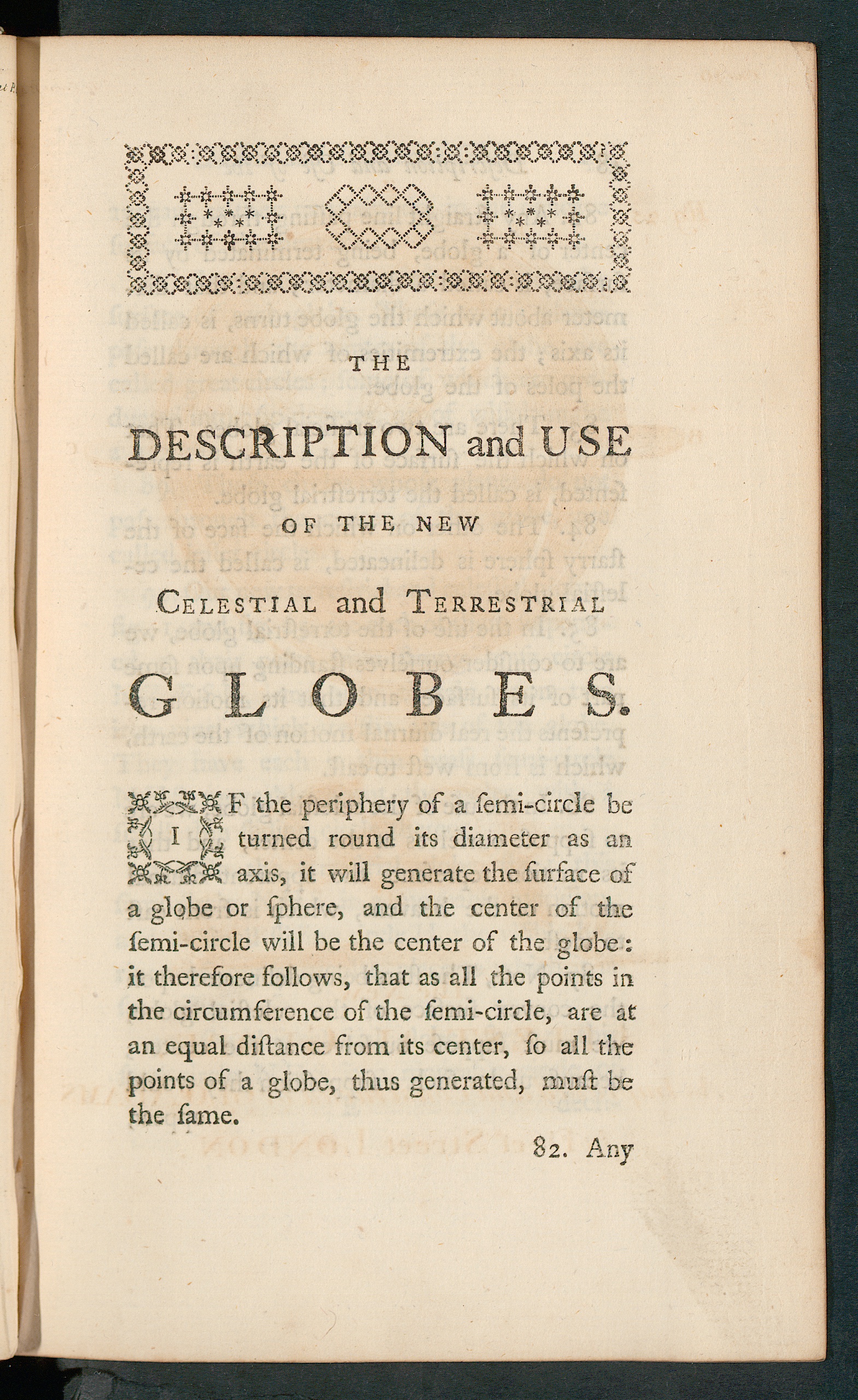 M St lO& axis, it will generate the surface ofa glqbe or sphere, and the center of thesemi-circle will be the center of the globe :it therefore follows, that as all the points inthe circumference of the semi-circle, are atan equal distance from its center, so all thepoints of a globe, thus generated, must bethe fame.