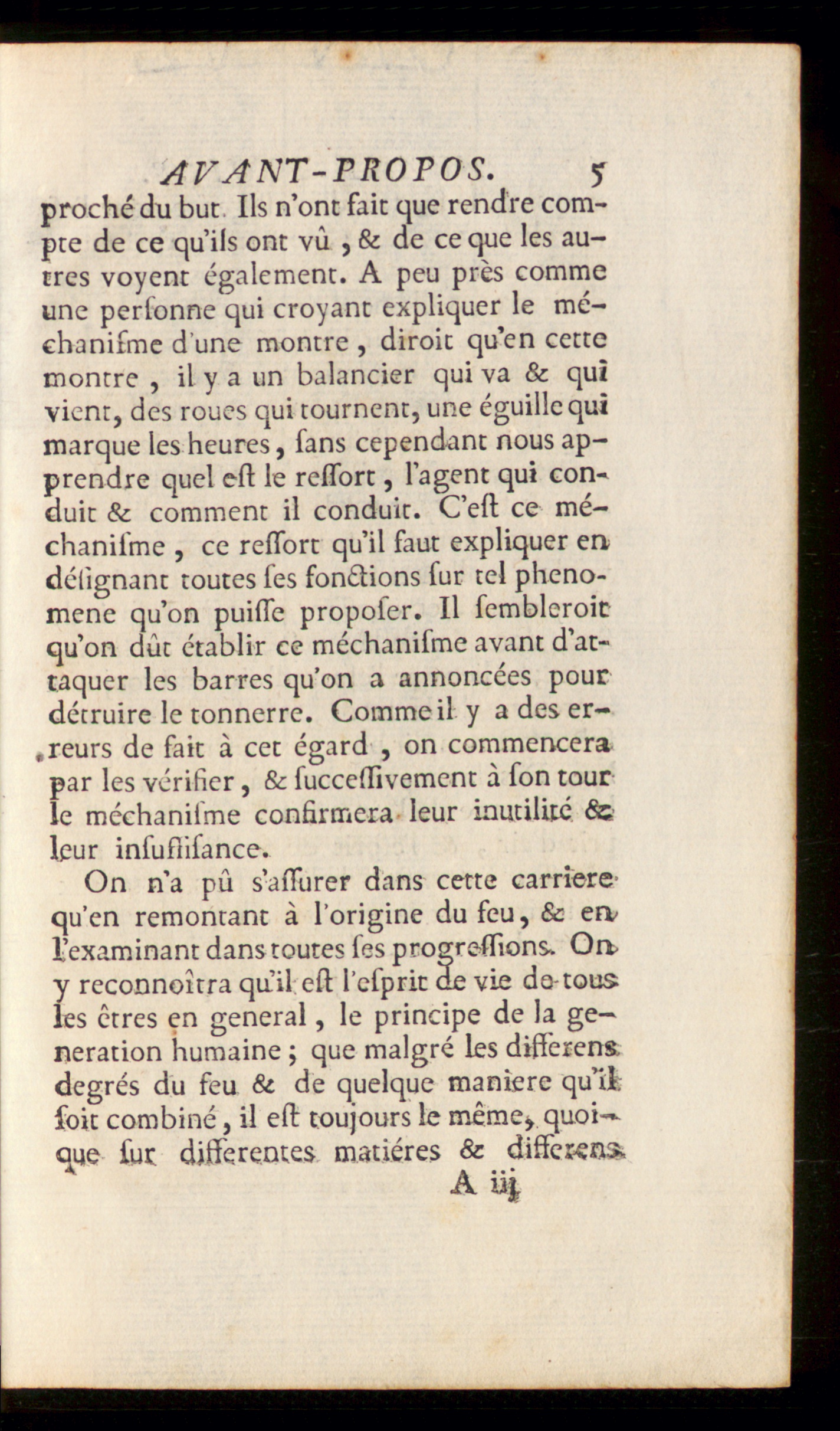 AVANT-PROPOS. 5proche du but Ils n’ont fait que rendre com-pte de ce qu’ils ont vû , & de ce que les au-tres voyent également. A peu près commeune personne qui croyant expliquer le mé-chanifme d une montre , diroit quen cettemontre , il y a un balancier qui va & quîvient, des roues qui tournent, une éguillcquimarque les heures, fans cependant nous ap-prendre quel est le ressort, l’agent qui con-duit & comment il conduit. C’est ce mé-chanifme , ce ressort qu’il faut expliquer endéíignant toutes ses fonctions fur tel phéno-mène qu’on puisse proposer. Il sembleroicqu’on dût établir ce méchanisme avant d’at-taquer les barres qu'on a annoncées pourdétruire le tonnerre. Comme il y adeser-«reurs de fait à cet égard , on commencerapar les vérifier, & successivement à son tourle méchanisme confirmera leur inutilité &leur insuffisance.