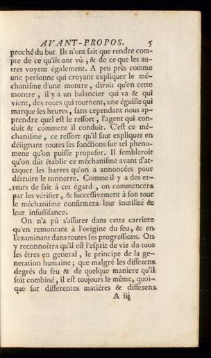 On n'a pu s’assurer dans cette carriersqu’en remontant à l’origine du feu, & enl’examinant dans toutes les progressions. Orty reconnoîrra quil est 1 esprit de vie do-tousles êtres en général, le principe de la gé-nération humaine ; que malgré les differens.degrés du feu & de quelque manière qu’ii.soit combiné, il est toujours le même» quoi-que fur disserentes matières & differens.