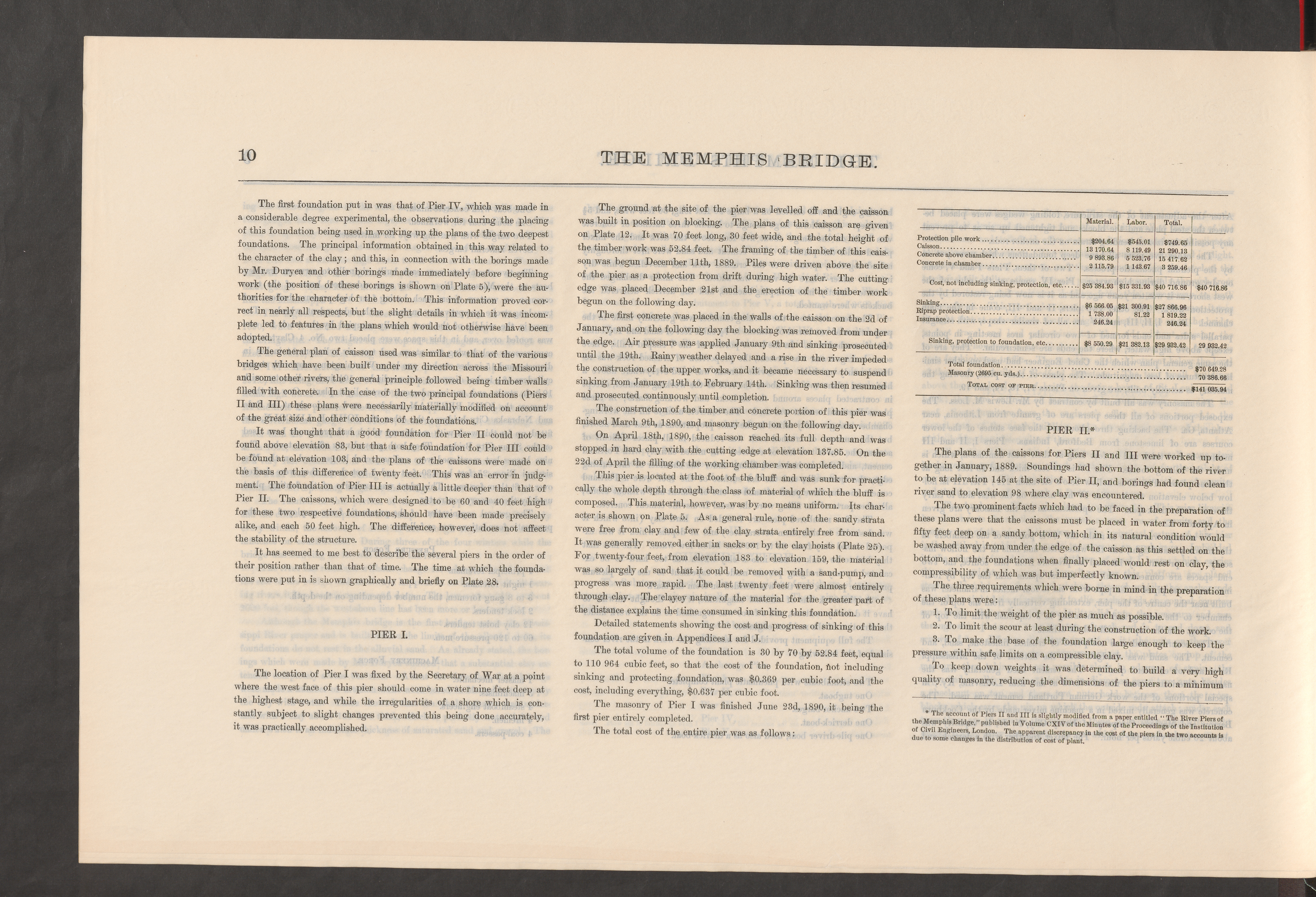 * The account of Piers II and III is slightly modified from a paper entitled “ The River Piers ofthe Memphis Bridge, ” published in Volume CXIV of the Minutes of the Proceedings of the Institutionof Civil Engineers, London. The apparent discrepancy in the cost of the piers in the two accounts isdue to some changes in the distribution of cost of plant.