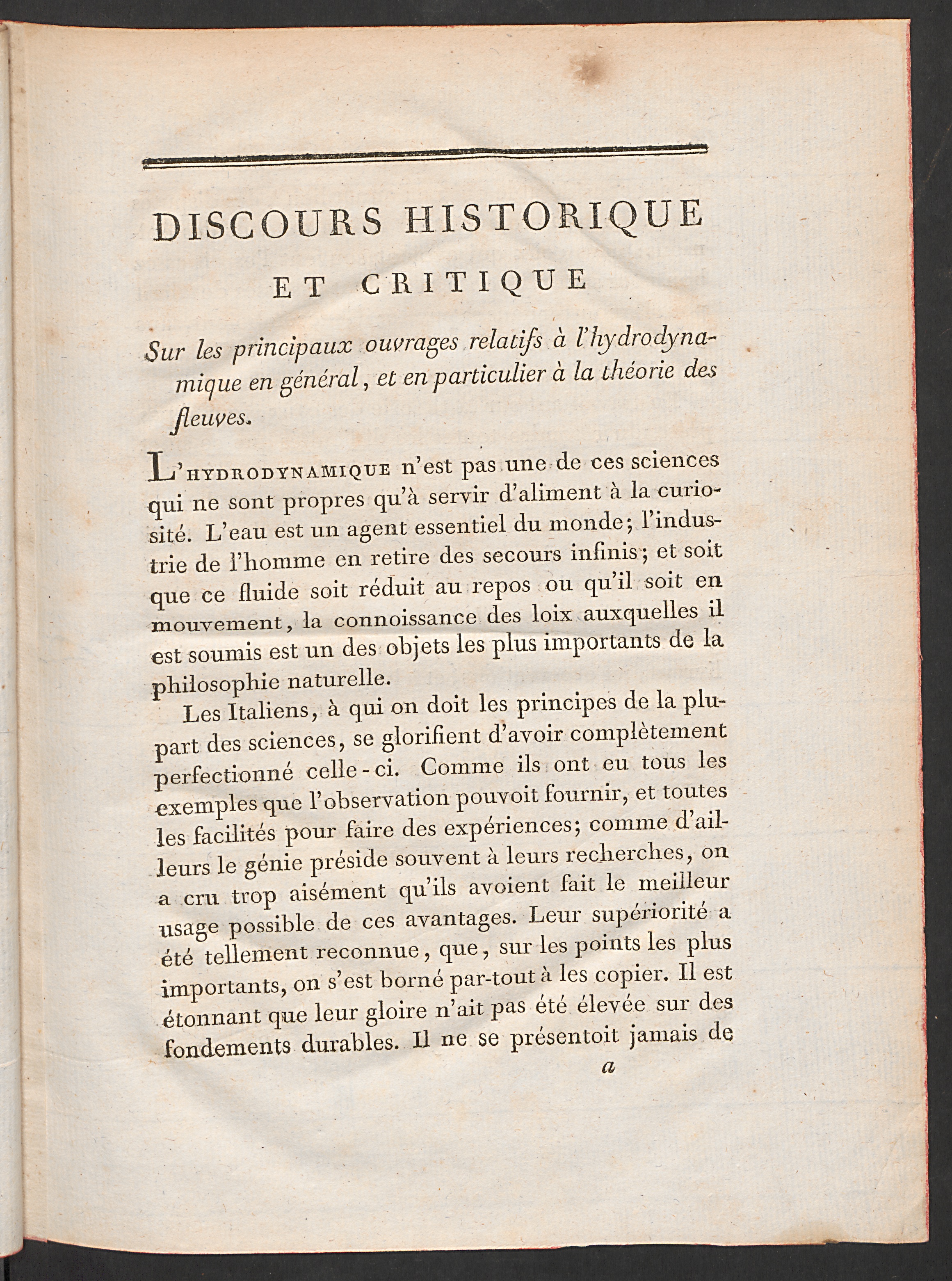L’hydrodynamique n’est pas une de ces sciencesqui ne sont propres qu’à servir d’aliment a la curio-sité. L’eau est un agent essentiel du monde; l’indus-trie de l’homme en retire des secours infinis ; et soitque ce fluide soit réduit au repos ou qu’il soit enmouvement, la connoissance des loix auxquelles ilest soumis est un des objets les plus importants de laphilosophie naturelle.