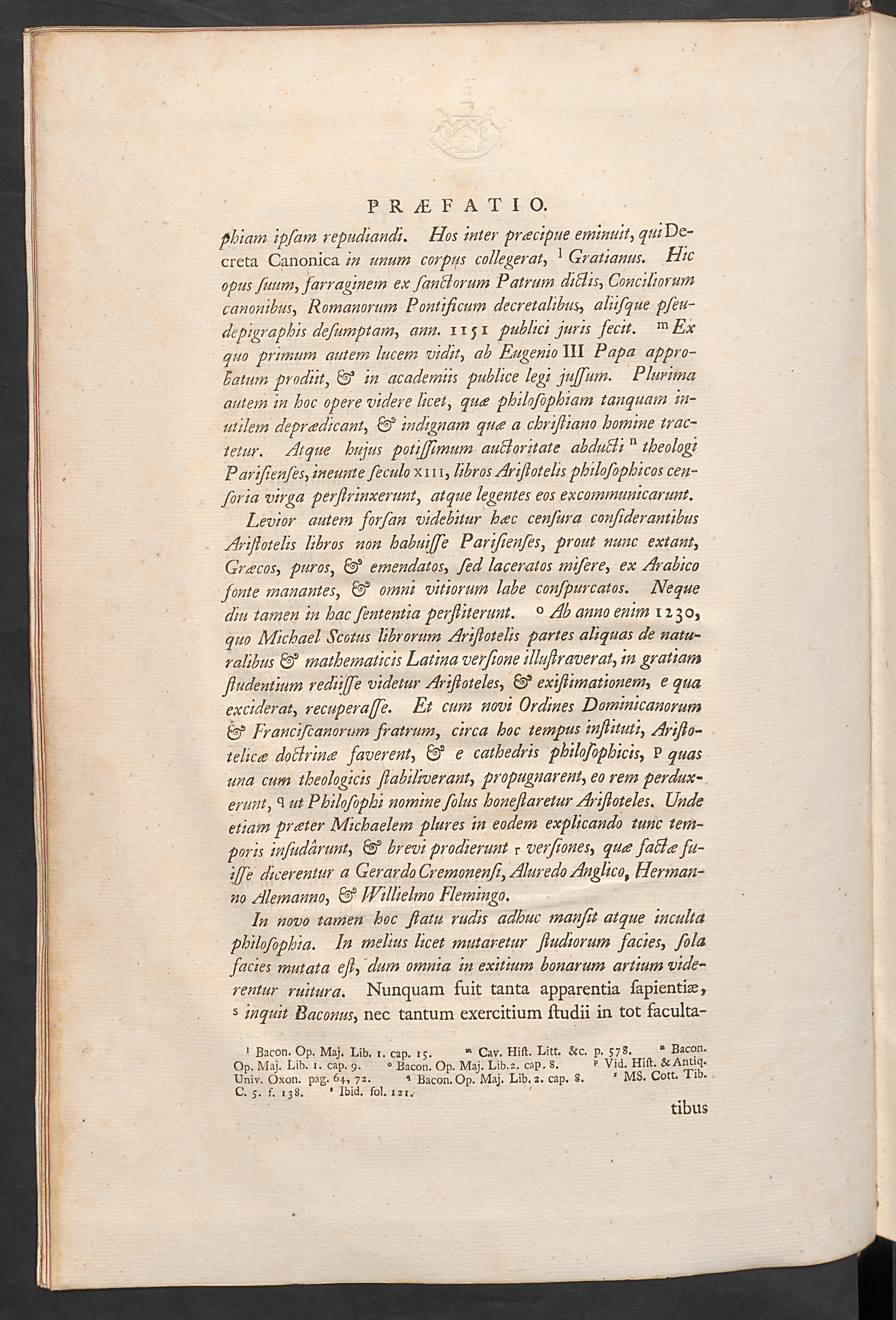 phiam ipsam repudiandi. Hos inter praecipue eminuit , qui De-creta Canonica in unum corpus collegerat , 1 Gratianus. Hicopus suum-i farraginem ex fanBorum Patrum diBis, Conciliorumcanonibus , Romanorum Pontificum decretalibus, ahifque pfeu-depigraphis desumptam , ann. 1151 publici juris fecit. m Exquo primum autem lucem vidit , ab Eugemo III Papa appro-batum prodiit, & in academiis publice legi jussum. Plurimaautem in hoc opere videre licet , qua philosophiam tanquam in-utilem depradicant , indignam qua a chrifliano homine trac-