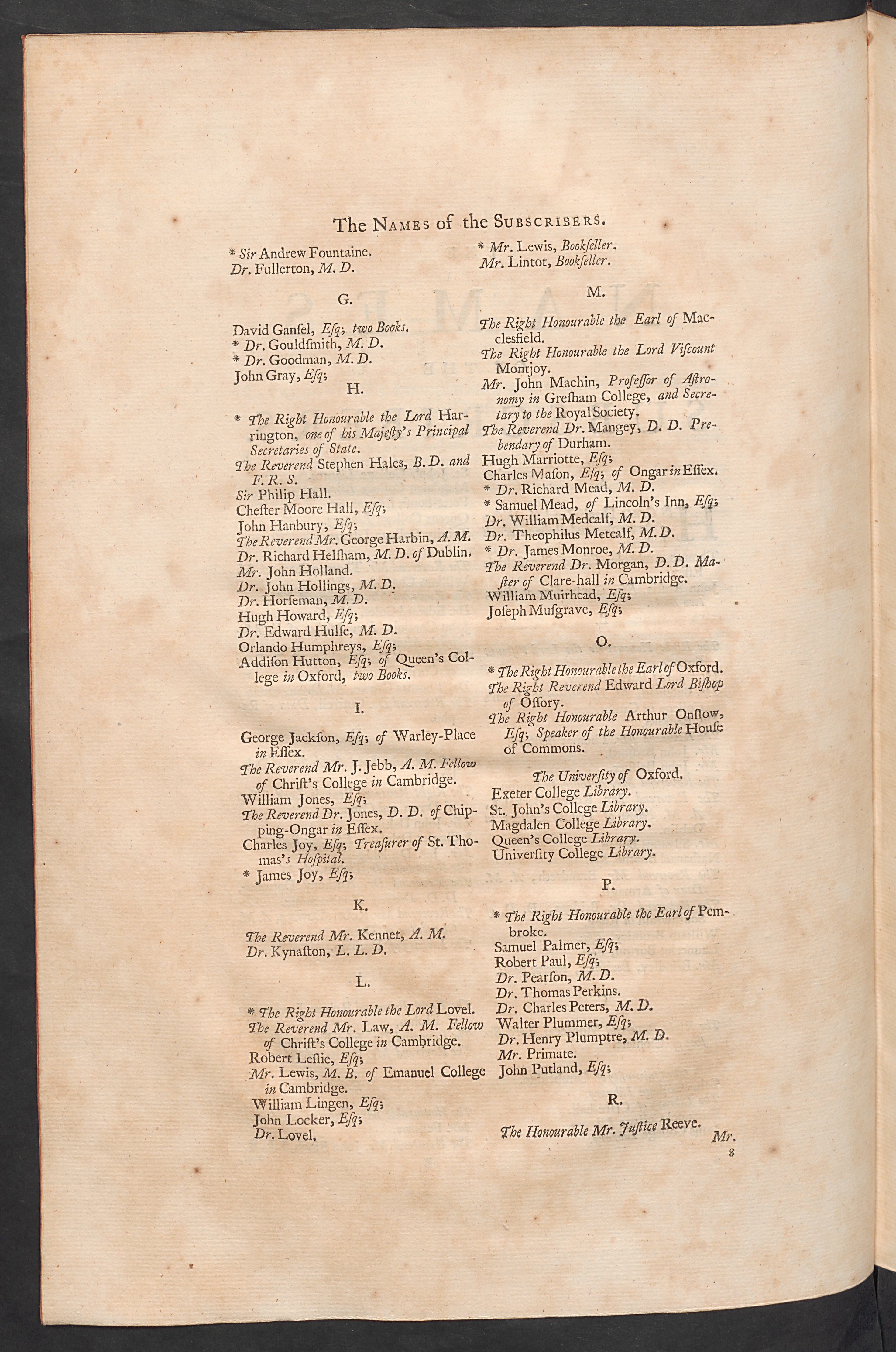 The Reverend Mr. George Harbin, A. M.Dr. Richard Helsham, M. D. of Dublin,Mr. John Holland.