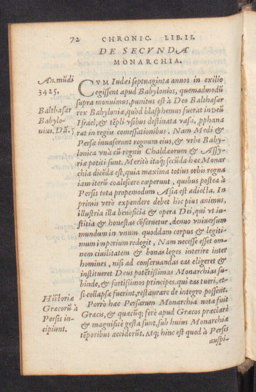 0dr rex Baby loni e, qubd bla.Balylo- I ſrael, c- tepli vſibus deſtinata vaſai, hhanauus. Da. J rat in regiu comeſſationibus. Nam A edi c-Perſe inuaſerunt regnum eius,& vrbe Baby-lonica vnd cũ regnis Chald eorimm. O-rie potiti ſunt. Meritd itaq́; ſccuda hc onarchia diceda eſt, quia maxima totius orbis regnaiam iteriᷣ coaleſcere cœherunt, quibus boſtea*Perſis tota prohemodum QAſia eſt adiec la. Inprimis verd ex hendlere debet hie pius animus,i lluſtria illa beneficia& opera Dei, qui vt iu-ſlitia& honeſtas ch eruetur denuo vniuerſummundum in vnum quoddam corpus c legiti-mum imperium redegit, Nam neceſſe eſſet om-nein ciuilitatem& bonds leges interire interhomines, niſi ad conſoruanclas eas eligeret cinſlitueret Deus poteriſſimas Monarchias ſu-binde, c fortißimos principes. qui eas tueri, et-Eliflorie ſſe collafpſſe fuerint, teſtaurare dle integro boſſent.e Porrò hee Petſarum Monarchia nota fuln. Srecis, quechq; fer apud Gracos preclarc magnificè geſta ſunt, ſub huius Monarchie2h oribus accicde rut. Atq; hinc eſt quod 4 Perſisauſſi-
