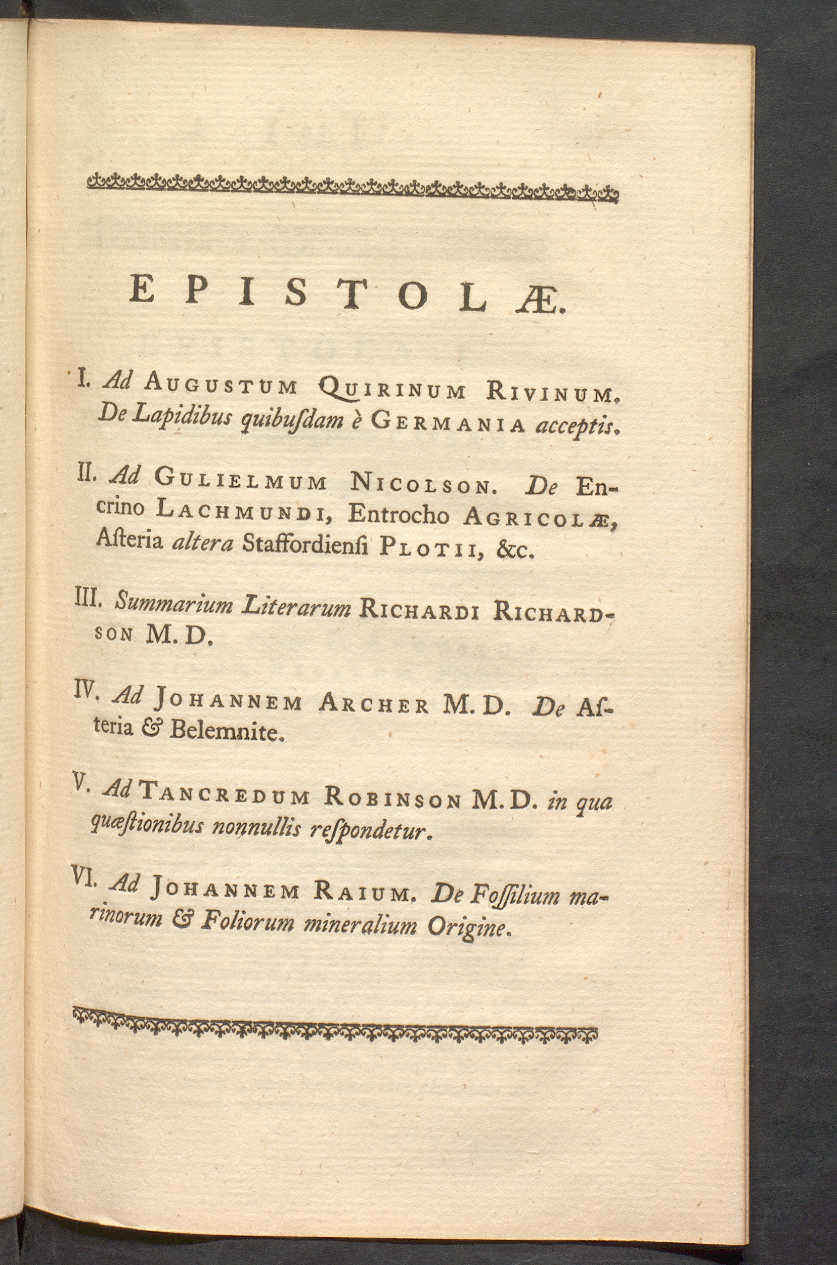 II. Gdlielmum Nicolson. De En-crino Lachmundi, Entrocho Agricola;,Asteria altera Staffordiensi Plotii, &c.