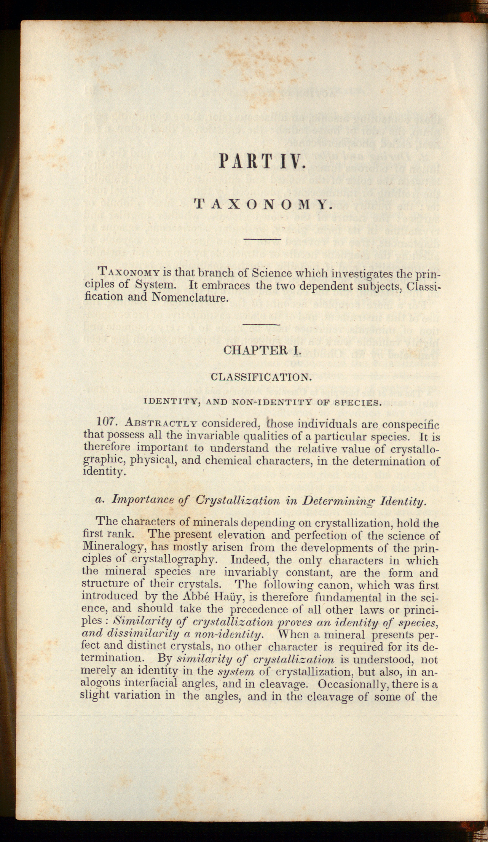 107. Abstractly considered, those individuals are conspecificthat possess all the invariable qualities of a particular species. It istherefore important to understand the relative value of crystallo-graphic, physical, and chemical characters, in the determination ofidentity.