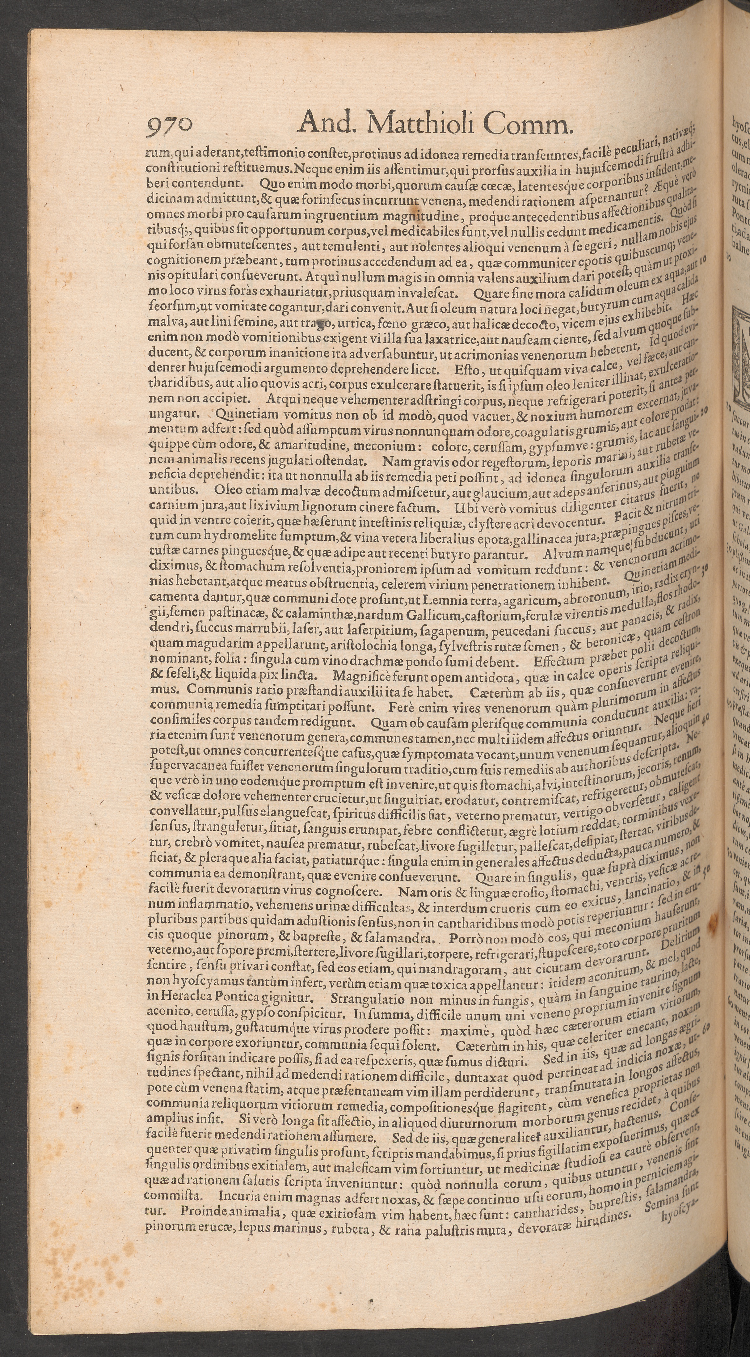 num inflammatio, vehemens urinae difficultas, & interdum cruoris cum e °- 6 re pesiu nl:lls haU^ufiipluribus partibus quidam adustionis sensus,non in cantharidibus modo p° tlS . ^coniu’ 11cis quoque pinorum, &bupreste, &salamandra. Porro non modo eos,q u * tot£) corp° s pid‘ s \,Jveterno,aut sopore premi,stertere,livore sugillari,torpere, refr igerari,stupef ce1 ^’ v0J . a run c 'sentire, sensu privari constat, sed eos etiam, qui mandragoran», aut cicutamnon hyoscyamus rantüm infert, verum etiam quae toxica appellantur: itidem ^ n g U ine ta {) j t e